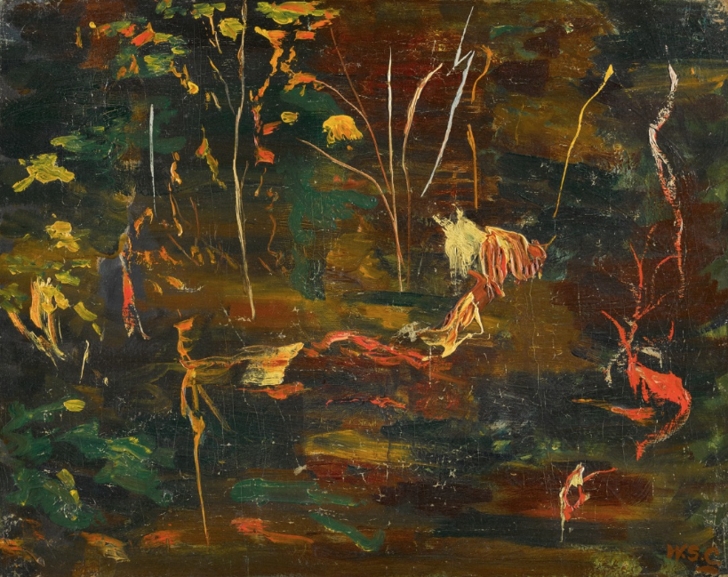 Churchill è stato un pittore molto prolifico. Dopo essersi appassionato all’hobby del pennello dagli anni ’20, dipinse oltre cinquecento lavori. Questo soggetto è stato trattato dal Ministro britannico in altre occasioni, ma questo sembra evidenziare una svolta verso l’astrattismo. E’ infatti completamente diverso un altro olio raffigurante questo stesso stagno realizzato nel 1932. E’ passato anche questo in asta: nel 2014 è stato battuto a ben 1,762,500 sterline (da una stima di 400-600 mila) da Sotheby’s.