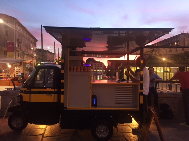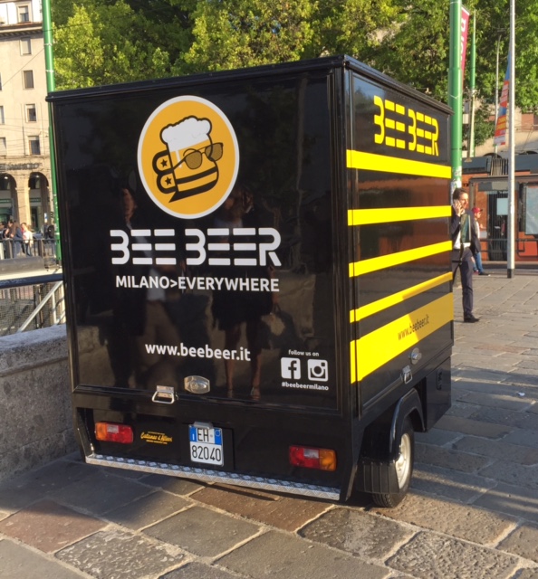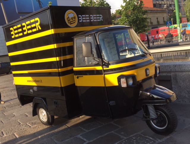 E’ il caso di Bee Beer, lo street drink di birra su un’Apecar, nato dall’intuizione di Davide Paltrinieri, classe 1990, brianzolo di Lissone con una laurea in psicologia sociale alla Statale di Milano, che grazie a professionisti, sturtupper, business angels e la piattaforma innovativa clubfunding.it è riuscito a realizzare uno dei suoi sogni. Dal desiderio di fare l’imprenditore e la passione per la “bionda” nasce una tre ruote molto cool che, come suggerisce il nome in inglese, ricorda l’insetto con le ali giallo e nero. Il suo bancone è la strada milanese e il suo tetto il cielo. Paltrinieri ama definirla “la birreria a tre ruote che svolazza qua e la’ in mezzo al traffico della città”.