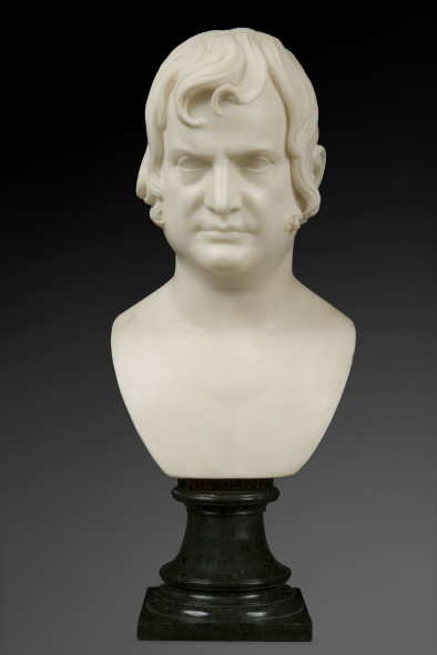 Secondo le note all’elenco de “Le opere presenti nello studio di Lorenzo Bartolini al momento della morte” redatto dal suo fedele allievo, Eliso Schianta, il modello in gesso di Niccolini non fu “mai eseguito in marmo”, tuttavia una scultura del letterato fu presentata pochi anni dopo a Firenze, dagli eredi dell’artista pratese, all’Esposizione Italiana agraria, industriale ed artistica del 1861. Dopo questa pubblica presentazione la collocazione del busto in marmo fu citata, nelle diverse monografie dedicate allo scultore, come “sconosciuta”. Ricomparsa solo qualche anno fa nel mercato antiquario, dopo oltre un secolo e mezzo, grazie a questa donazione, la scultura in marmo e il modello in gesso sono di nuovo l’una accanto all’altro. Entrambi firmati e datati i busti presentano come unica difformità, quella della dimensione. Stilisticamente identici, i due ritratti presentano il Niccolini con un’espressione leggermente contrita. I capelli – finemente modellati – ricadono morbidamente sulla fronte, unico vezzo dato al ritratto improntato all’antica.