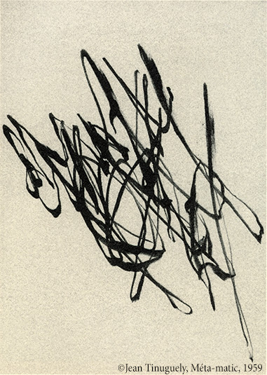 Negli spazi della galleria viene presentata una serie di disegni realizzati dalle macchine/sculture méta-matic ideate da Jean Tinguely a partire dal 1959.