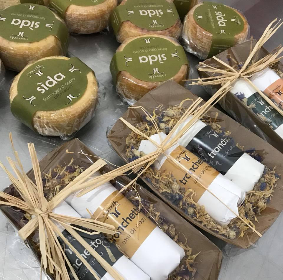 Tutti i prodotti dell’azienda agricola vengono fatti con latte di capra munto in azienda: utilizzato crudo per gli stagionati e semicotto per i formaggi freschi. Cremosi e piacevoli al palato mantengono inalterati i valori nutrizionali di cui è ricco l’alimento, non più solo fonte di nutrimento ma un piacere da abbinare a erbe o confetture fatte in casa per esaltarne la gradevolezza. C’è “Capriccio”, formaggio di capra fresco, dalla consistenza gradevolissima, proposto in un delizioso vasetto di vetro nella versione con zafferano, pepe rosa, noci, erba cipollina e peperoncini, “Sòvana”,un tomino a pasta fiorita che offre una rapida soluzione per chi a tavola vuole mangiare sano, leggero e sardo e poi ancora “Mesa” un formaggio di foggia quadrata, a pasta fiorita dal gusto elegante, “Biancospino”, con una consistenza simile a una ricotta salata ma l’inconfondibile gusto del formaggio di capra “Sìda” una piccola formaggella di capra affumicata, “San Juan”, “Nidos”, “Arcano” fino ad arrivare allo Joddu (lo yogurt di capra).