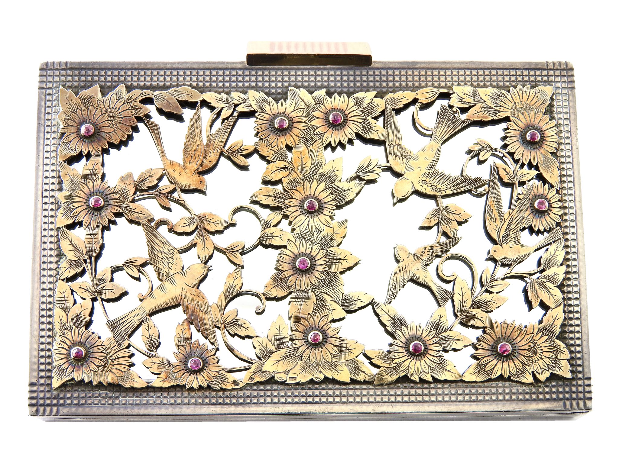 In asta anche un’interessante collezione di circa cinquanta orologi da polso delle più famose manifatture internazionali: Rolex, Vacheron Constantin, Jager LeCoultre, Cartier, Baume et Mercier, Patek Philippe, Omega, Longines. Numerosi i modelli Rolex tra cui un Daytona nella versione acciaio-oro ed un Oyster GMT Master in acciaio (entrambi valutati € 7/8.000). Tra i modelli Lady invece un raffinato Vacheron Constantin MCMLXXII del 1972 in oro bianco e diamanti, stimato € 3.800/4.000. Molte le curiosità, anche d’epoca, tra cui una deliziosa pochette in argento e oro di Boucheron Paris (€ 1.000/1.200) ancora corredata della sua borsetta originale in raso nero.