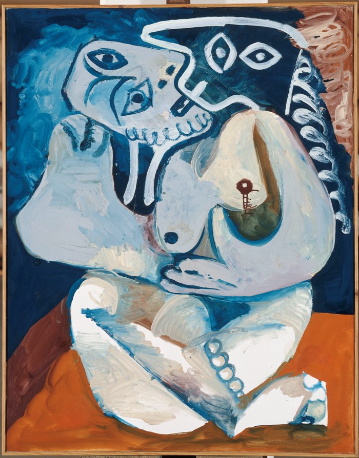 La carriera e la vita di Picasso si chiusero a Mougins nel 1973, sulle Alpi Marittime, dove il pittore si era ritirato circa un decennio prima. In questi anni riscoprì il Cubismo, anche se in forme più “ammorbidite” rispetto alla spigolosità degli anni dell’avanguardia. Poco compresa all’epoca, questa sua produzione è stata negli anni giustamente rivalutata, stante la profonda poesia della quale è intrisa. Questa grandi figure sfiorano l’epica e la metafisica, ma lo fanno con ironia, con lo sberleffo del genio che può permettersi uno sguardo dall’alto in basso.