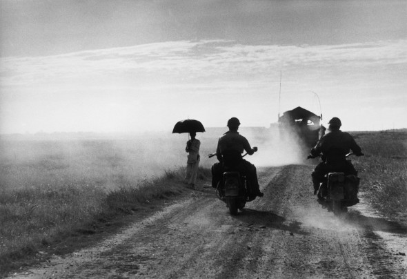 A settant’anni dall’istituzione della Magnum Photos, il Museo Civico di Bassano del Grappa porta in esclusiva in Italia una retrospettiva dedicata a Robert Capa, tra i fondatori della storica agenzia fotografica parigina, all’unanimità considerato il più grande fotoreporter del secolo scorso. Allestita tra due piani dell’ex convento dei frati francescani in cui ha sede il museo bassanese, un’esposizione pacata e senza fronzoli presenta al pubblico quasi cento fotografie in bianco e nero, tratte dai reportage più celebri di Capa, ordinate secondo un criterio cronologico. Ci sono undici sezioni, ognuna accompagnata da un’introduzione esaustiva. Si comincia dall’autunno del 1932, quando Capa documentò la conferenza dell’esule rivoluzionario russo Leon Trotsky a Copenhagen e, passando per lo sbarco in Normandia delle truppe americane il 6 giugno 1944, di cui sono esposti tre degli iconici undici scatti superstiti, si arriva all’ultimo viaggio in Vietnam nel 1954.