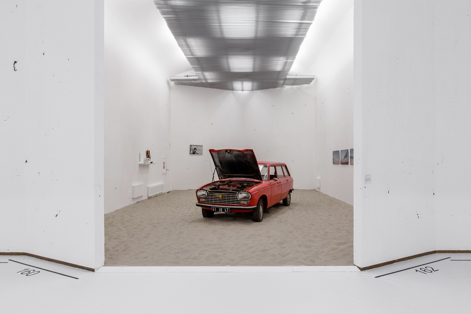 Per l’occasione l’artista realizza anche due lavori site specific fortemente legati all’architettura del PAC:nel primo ricopre interamente il pavimento con una planimetria in scala 1:1, riedizione di un’opera del 1998 qui ricontestualizzata; nel secondo, Stanze (PAC,) crea una nuove versione dei suoi lavori realizzati con la polvere,IMPERIUM (Räume), tinteggiando le pareti del Padiglione con un acquarello ottenuto a partire dalle polveri raccolte nei suoi ambienti.