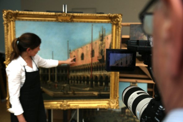 La pellicola si addentra inoltre nell’annosa questione dell’uso della camera oscura da parte di Canaletto. Questo strumento è sempre stato ritenuto funzionale alla creazione delle sue opere. Incredibilmente, rivela la curatrice dei disegni, Rosie Razzall, non sono state trovate conferme puntuali sul suo uso da parte del maestro. Lo studio e l’analisi agli infrarossi dei disegni preparatori, al contrario, suggerisce che i disegni fossero preparati in studio con il solo ausilio di righe e compasso.