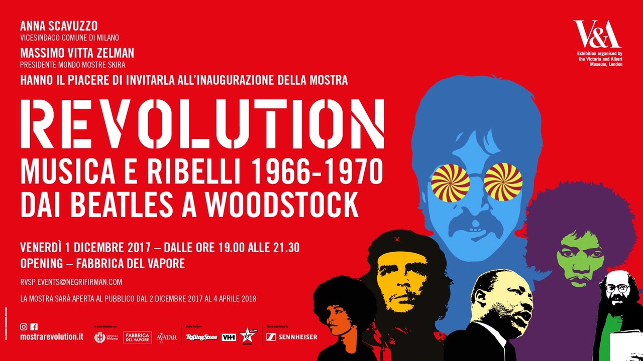 Da 2 dicembre 2017 al 4 aprile 2018 alla Fabbrica del Vapore di Milano va in mostra Revolution. Records and rebels 1966-1970 dai Beatles a Woodstock: una mostra sulle storie, i protagonisti e gli oggetti di quel breve, densissimo periodo tra il 1966 e il 1970 che cambia per sempre le vite di quella generazione e, a cascata, quelle di tutti noi.