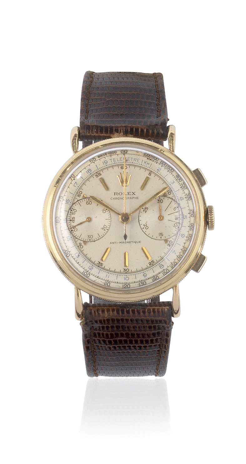 OROLOGIO DA POLSO ROLEX CHRONOGRAPHE ANTI-MAGNETICQUE IN ORO 18 KT, REF. 4062 N. 539966, ANNO 1946
