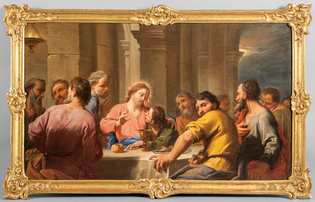 “L’Ultima Cena” olio, bella cornice in legno intagliato e dorato