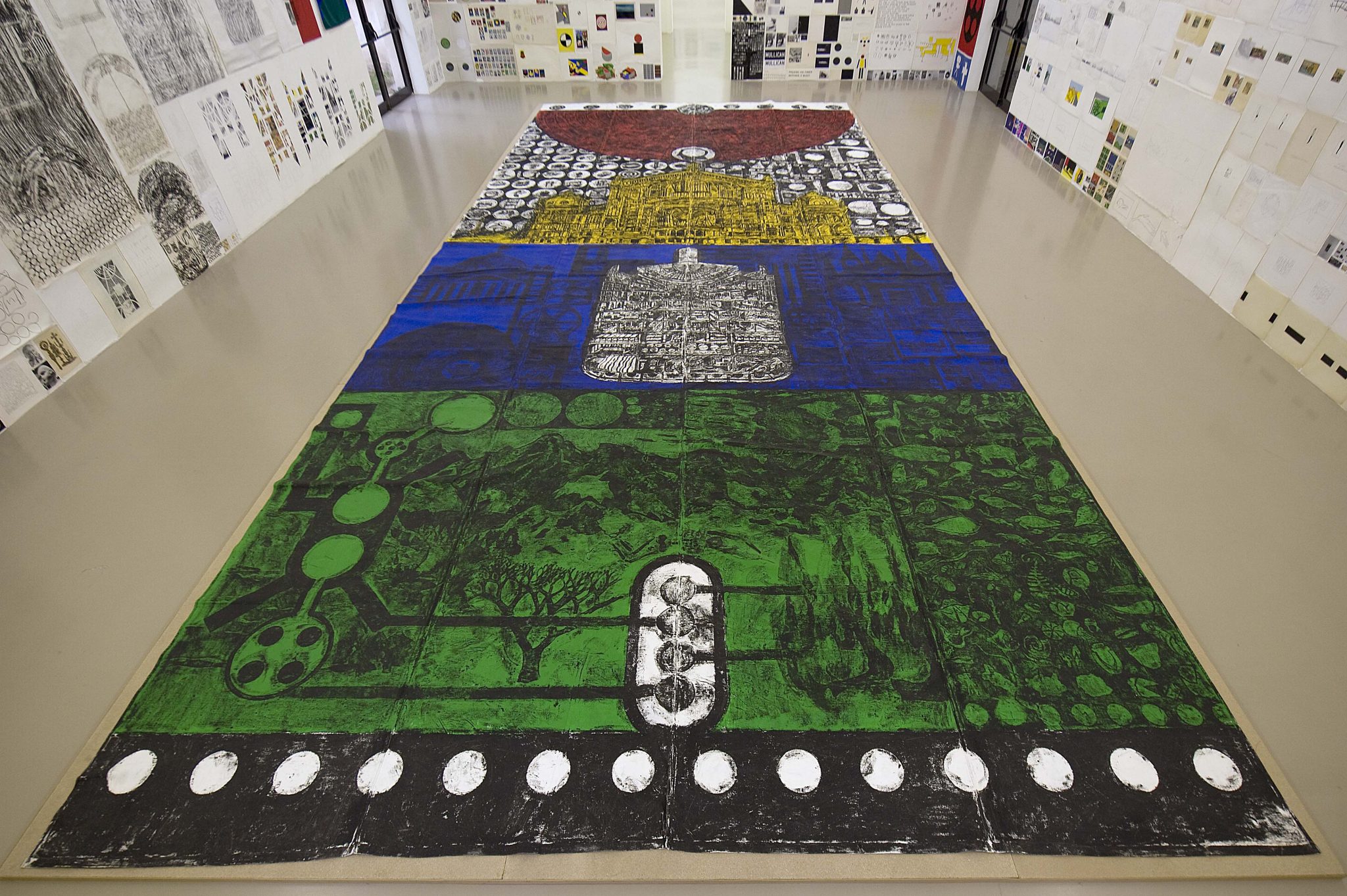 Per Pirelli HangarBicocca l’artista ha concepito un’imponente struttura scultorea -sulla forma delle sue cosmologie in cinque colori- che occupa i 3.500 metri quadrati dello spazio espositivo delle Navate. I visitatori sono invitati a entrare e a percorre questa architettura, scoprendo le migliaia di opere esposte al suo interno. La mostra presenterà un’ampia selezione di opere dagli anni Settana ad oggi.