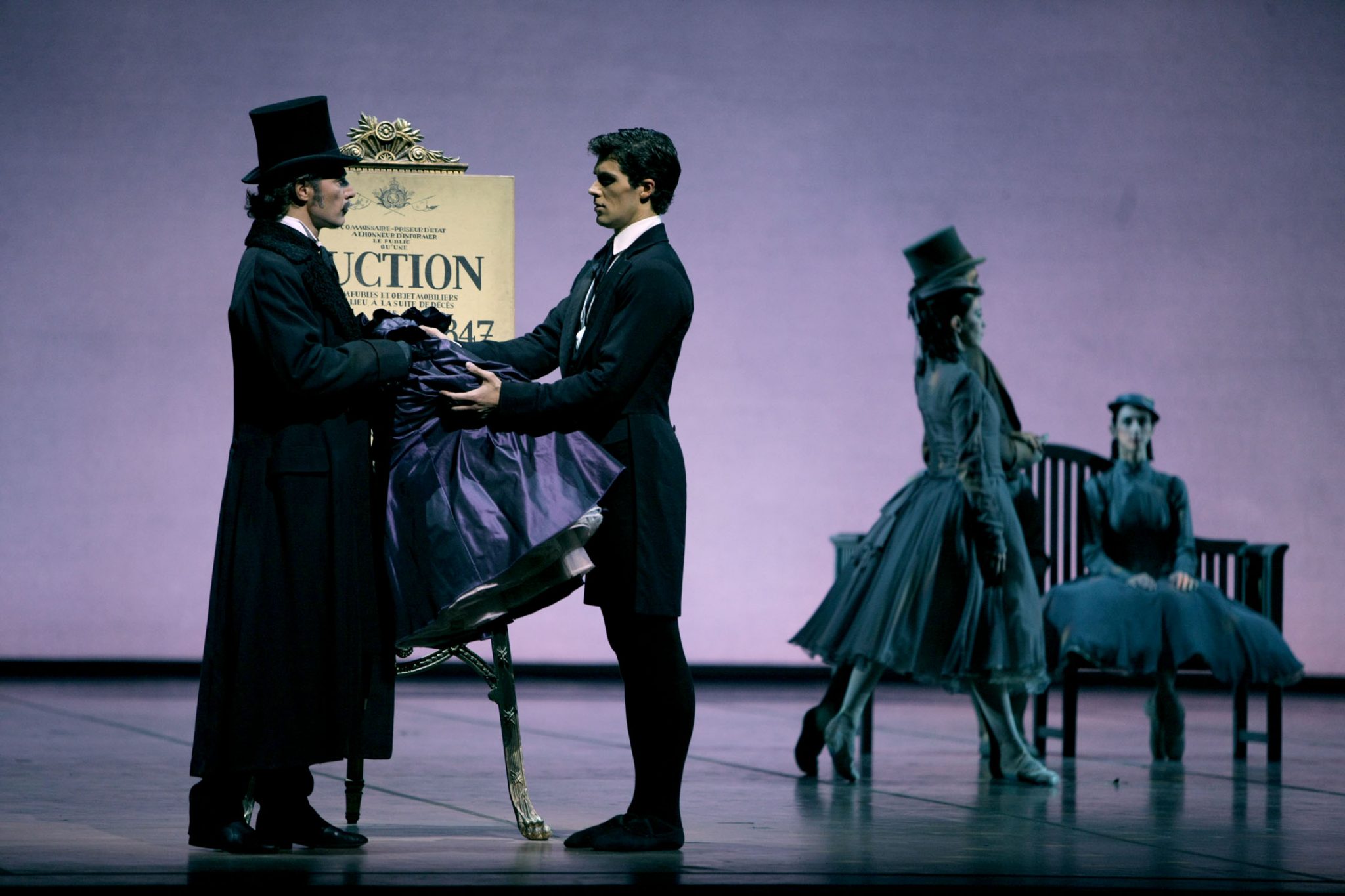 Prendendo spunto dal libro che nel romanzo Armand regala a Marguerite, la «Manon Lescaut», il coreografo americano immagina che il primo incontro tra i due avvenga a teatro, durante il balletto «Manon» e da qui parte un piano speculare rappresentato dalla coppia Manon – Des Grieux, che accompagna ogni tappa della tragedia di Marguerite fino alla morte. Una trovata di grande effetto teatrale che commenta e duplica ciò che accade ai due protagonisti. Diciamo un “teatro nel teatro” che riflette le passioni dei due amanti come in un confronto che li attira e respinge nello stesso tempo. Ed è proprio con un “pas de trois” in cui Marguerite si identifica con i due innamorati del romanzo di Prevost che non sa più distinguere nè Armand da De Grieux, nè lei stessa da Manon.