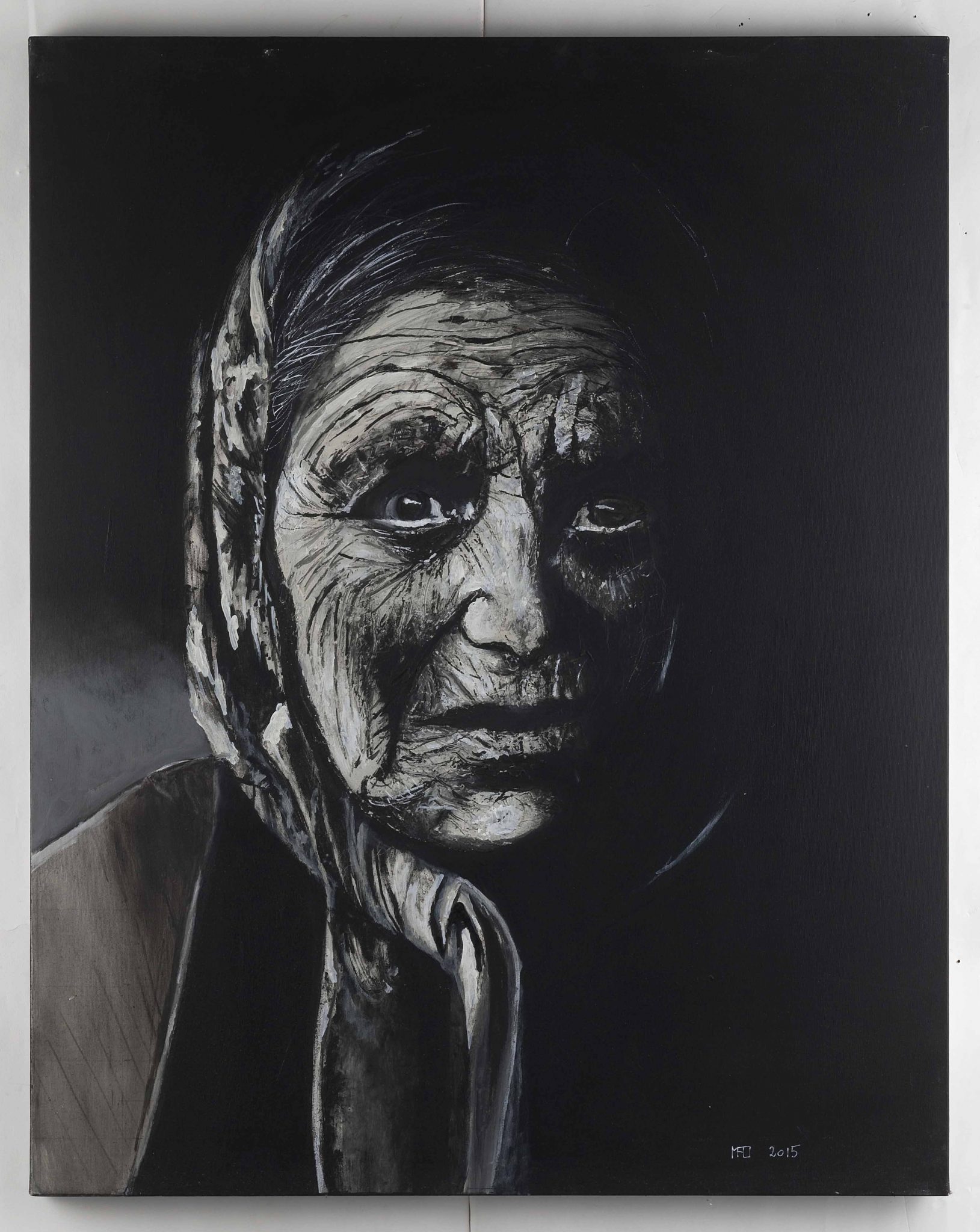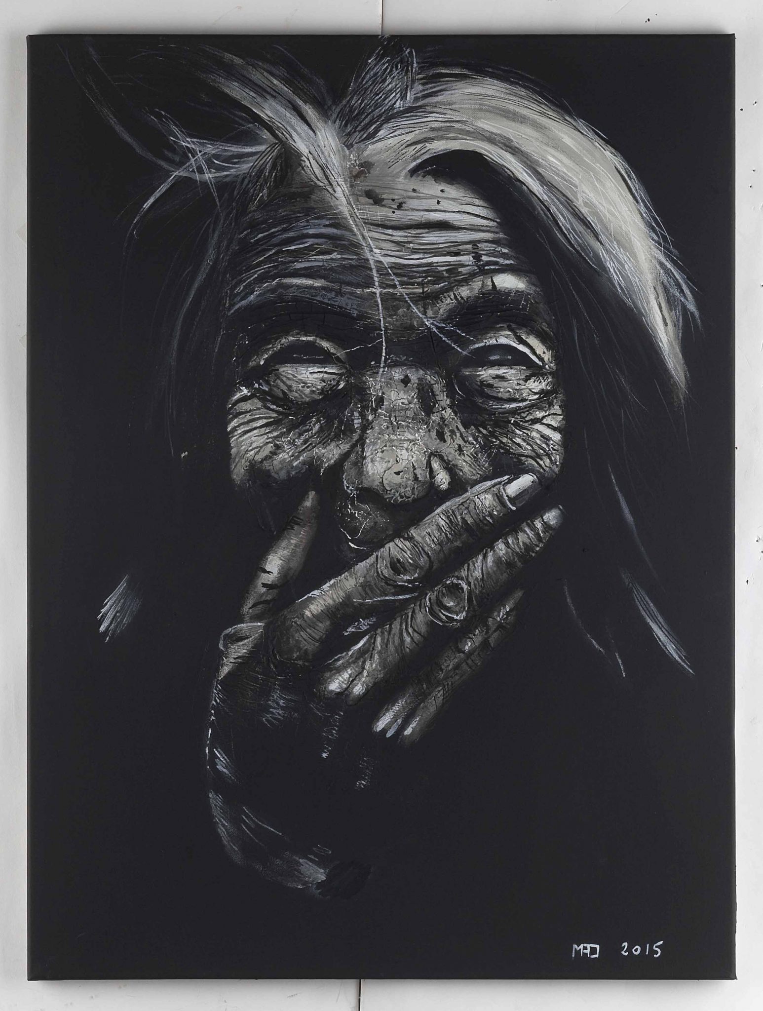 Volti che portano inciso l’affanno della quotidianità e rughe come fratture, espressioni come movimenti tellurici, emozioni come fiumi carsici che esistono nel profondo e muovono in un dominio nascosto, in apparenza volti di naufraghi senza speranza di approdo. Ma è negli sguardi che l’artista riesce a cogliere il senso profondo di questa umanità marginalizzata, il vissuto che può apparire – ai più- come scoria e relitto di vite destrutturate. Mao ci restituisce, rielaborate dal medium artistico, sguardi di sognatori, di disperati, di poeti, di santi, a volte di rissosi, ma ognuno di questi (sguardi) origina un proprio senso di libertà, come se la strada , proscenio di questa dura commedia umana, avesse dato profondità e spessore ad un copione altrimenti già letto.