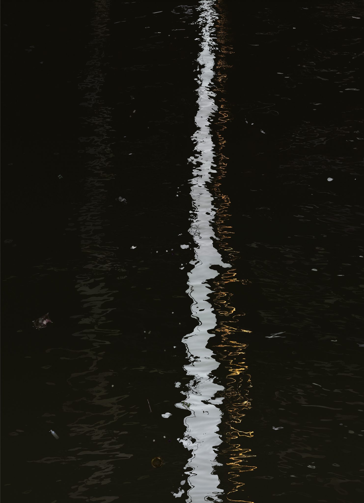 La monumentalità delle opere si sposa perfettamente con gli immensi spazi della straordinaria sala ovale della galleria. Chiariamo subito che il grande formato per l’artista ha un preciso fine compositivo . E’ una strategia di comunicazione che grazie alla resa dei dettagli permette allo spettatore di “immergersi” nell’opera . I lavori di Gursky infatti, offrono al visitatore due letture, ben diverse una dall’altra. A prima vista prevale l’armonia , la bellezza dello scatto, la sua atmosfera vagamente metafisica. Con una lettura più attenta, avvicinandosi all’opera, si possono scorgere una serie di particolari che sovvertono il modo di percepire l’opera stessa. Ecco dunque che basta avvicinarsi e concentrarsi su una delle fotografie della serie dedicata al fiume Chao Phraya – che ha ispirato l’artista durante uno dei suoi numerosi viaggi in giro per il mondo- per scorgere, dietro la bellezza formale dell’intera composizione, dettagli inquietanti come bottiglie di plastica, copertoni d’auto, imballaggi di cibi usa e getta, pesci morti. Perfino alcune alghe dietro il loro aspetto decorativo della composizione, nascondono in realtà la loro natura tossica. Le luminose increspature delle acque del fiume dunque, ci mostrano le loro contraddizioni solo quando ci ” immergiamo ” nell’opera, dove il vero soggetto non è tanto il fiume che attraversa Bangkok ma lo scatto stesso, denso di dettagli da scoprire. Questo è del resto il fine di Gursky : mostrarci quello che c’è dietro quella che ci appare come la realtà oggettiva. Non idealizza , cerca suggestioni che producano l’essenza della realtà. Senza imporre un giudizio, che in ultima analisi rimane sospeso . Forse anche per questo le sue opere sono universalmente apprezzate. Costruite ma al tempo stesso distaccate.