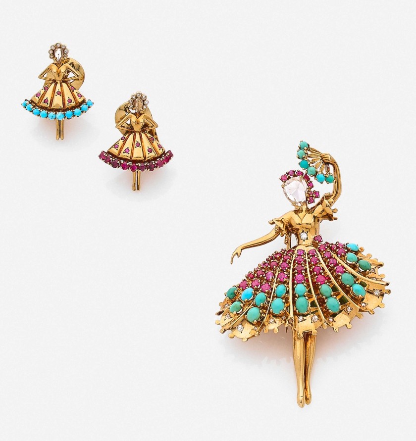 Clip de corsage et paire de clips d”oreilles “Ballerine”