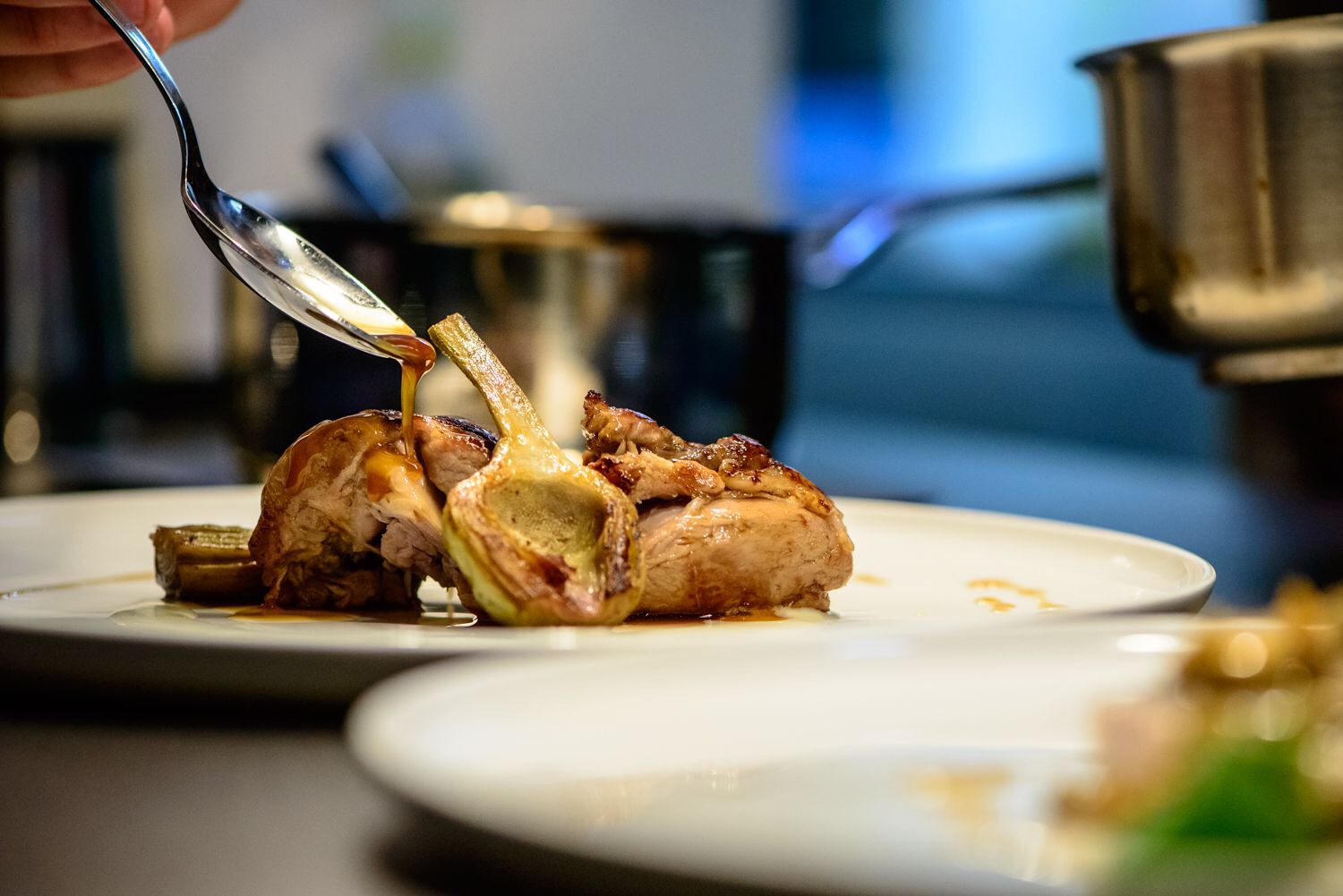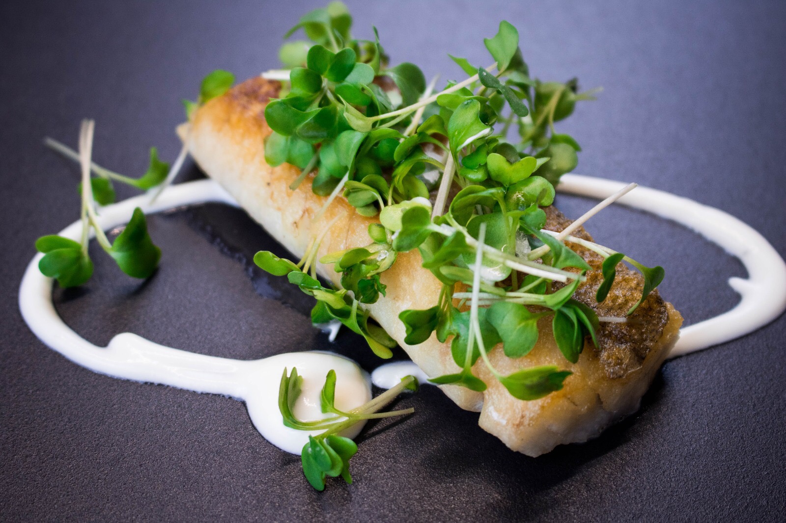 Perpetual stupisce anche per gli spazi. Interior design d’autore che mette insieme materiali di pregio e interni moderni, capace di creare un’atmosfera intima e calda. Il locale è articolato su tre piani. Al pian terreno c’è la zona bar, con il bel bancone in legno fossile del Kazakistan, e la sala dedicata al pranzo e l’aperitivo, che rimane più informale. Salendo al primo piano, invece, si trova il ristorante gourmet, preceduto da un salottino con la cantina dei vini. Dietro una parete scorrevole, che comunica con la cucina, si nasconde il laboratorio di lieviti e pasticceria. Gli spazi dunque sono eleganti e minimal, con tavoli e sedie curati dal noto architetto Simone Subitoni. Mentre l’illuminazione, che gioca un ruolo chiave nei tre piani di Perpetual, è firmata da Davide Groppi. Infine, l’ultimo piano è riservato allo staff, con il laboratorio di ricerca gastronomica e gli ambienti di servizio.