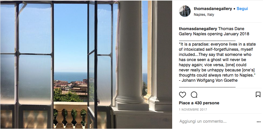 Manca una settimana all’apertura della nuova galleria di Thomas Dane a Napoli. L’inaugurazione sarà giovedì prossimo, mentre l’apertura la pubblico da venerdì 25. Dane ha aperto la sua prima galleria nel 2004 a Duke Street, nel quartiere St. James’s a Londra.