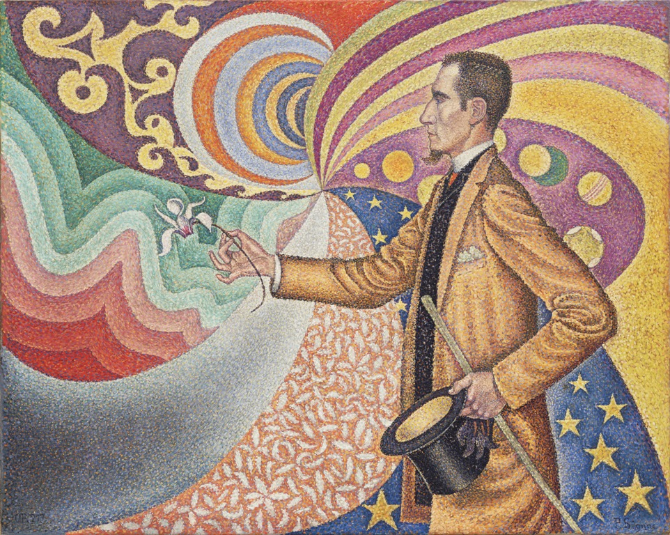 Un’atemporalità che sarà metafora di un tentativo estremo di sfuggire alla violenza della Storia. Sospeso fra ricerca estetica, occultismo e mondo del subconscio, Paul Signac – cui il Surrealismo sarà debitore -, che dopo aver aggiornato l’Impressionismo attraverso il Pointillisme, inventa una pittura dal sapore magico e i colori accesi, ispirata alle corrispondenze teorizzate da Charles Henry tra le proprietà delle forme e dei colori e le emozioni umane. Arte sospesa fra alchimia e psicanalisi, rutilante di colori con effetto smaltato, assai dinamica nell’effetto ottico generale: Sur l’émail d’un fond rythmique de mesures et d’angles, de tons et de teintes, portrait de M. Félix Fénéon en 1890, Opus 217 (1890), precorre il Surrealismo sia per la complessità del titolo, sia per le atmosfere oniriche da lui toccate. Lo spettro della mostra, geografico e concettuale, è ampio, e accompagna il pubblico fino a Vienna: il drammatico irrompere della modernità fu percepito in maniera particolare da Gustav Klimt, esponente di spicco della Wiener Secession, struggente e decadente espressione degli ultimi bagliori dell’Austria Felix.