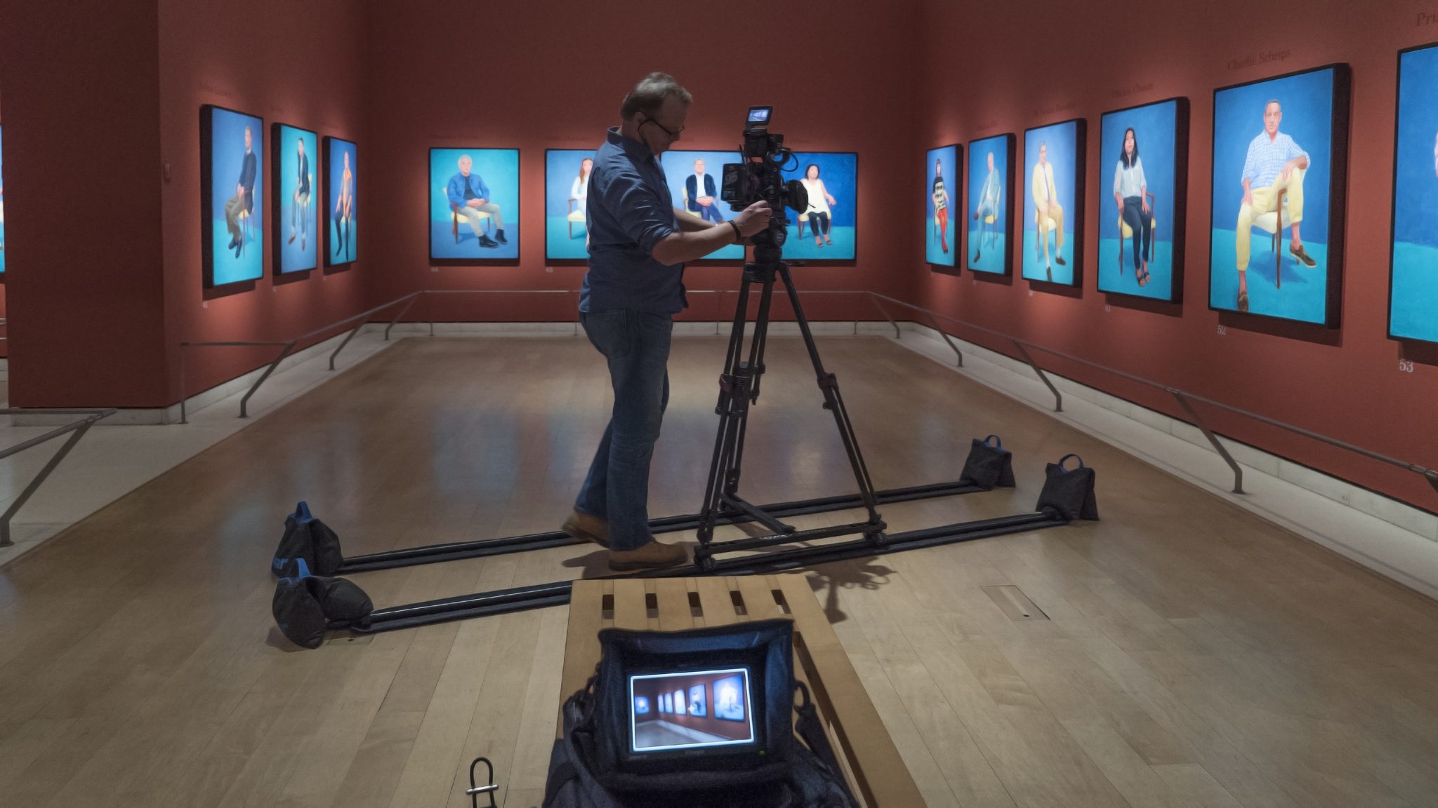 Lo studio di Los Angeles, una sedia e uno sfondo semplice blu e verde per non distogliere lo sguardo dalla figura. Dal paesaggio si passa alla ritrattistica. 82 Portraits and One Still Life nasce a soli quattro anni di distanza da A Bigger Picture.