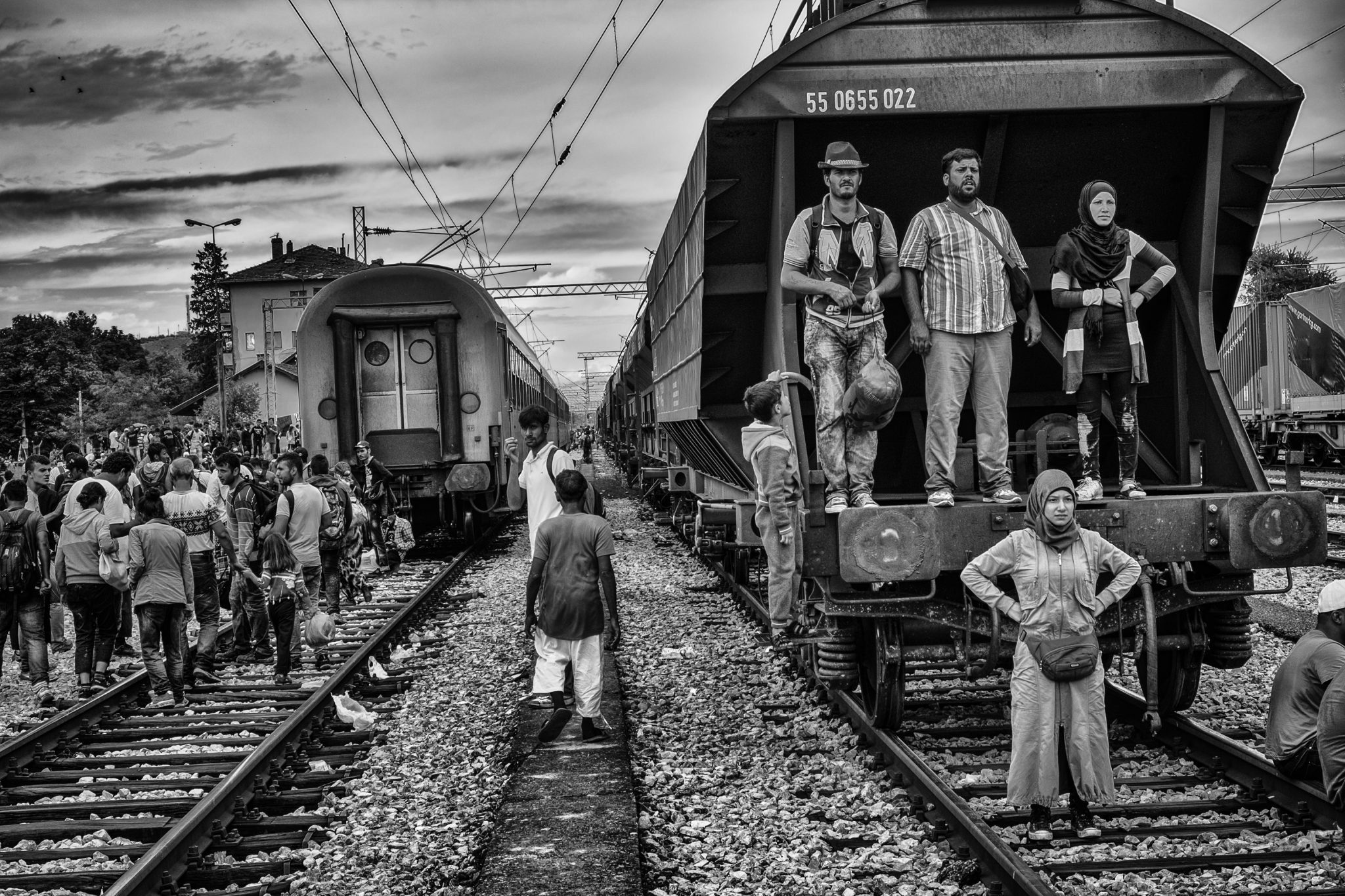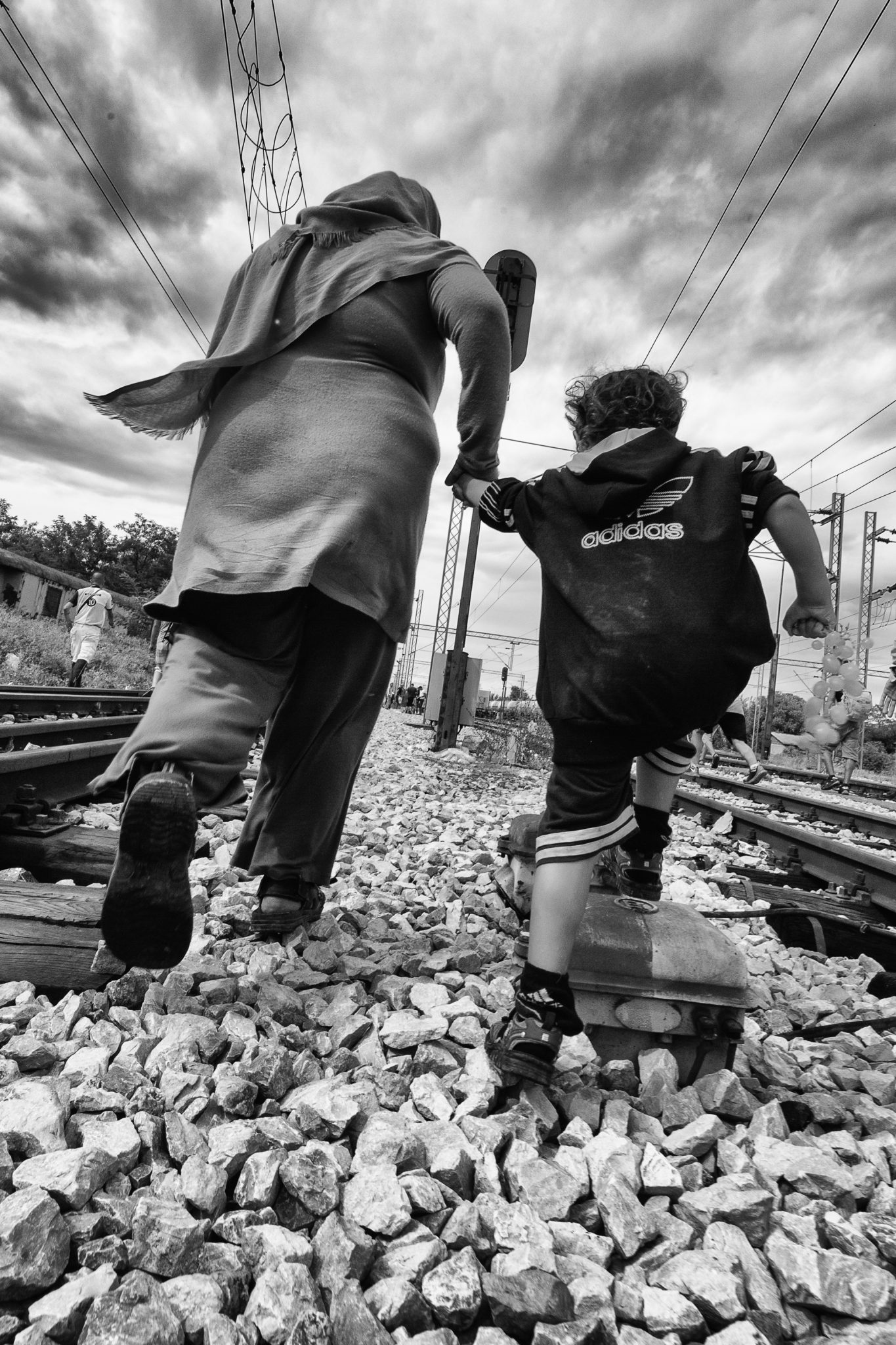 Il corpus di opere fotografiche, in bianco e nero, documenta il viaggio dei due autori compiuto nell’estate del 2015 sulla rotta balcanica dei migranti, a fianco delle famiglie di profughi siriani iracheni e afgani, durante l’esodo sulla via dei Balcani.
