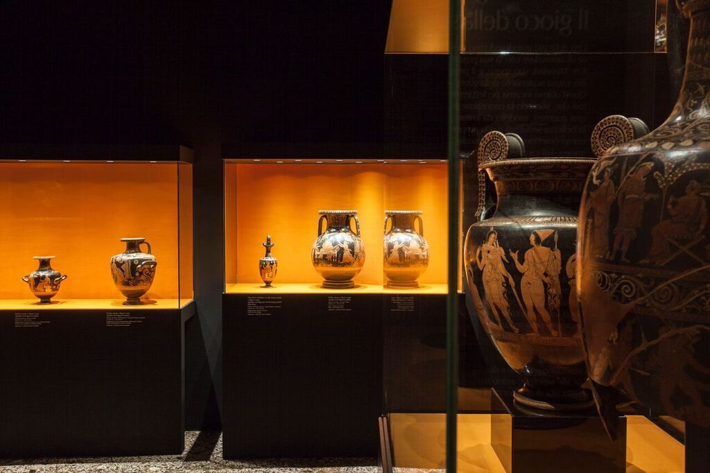 Così in occasione della mostra vicentina sono giunti dal Museo archeologico di Napoli e di Reggio Calabria, grazie all’apporto della Banca per il loro restauro e restituzione, pezzi unici e rari che vanno ad aggiungersi alle collezioni storiche vicentine di ceramiche attiche e magnogreche provenienti dalle necropoli di Ruvo di Puglia (la storica raccolta Caputi, la cui formazione risale all’Ottocento) in questo affascinante racconto degli aspetti di vita e di cultura greca e della Magnagrecia fra V e VI a.C.