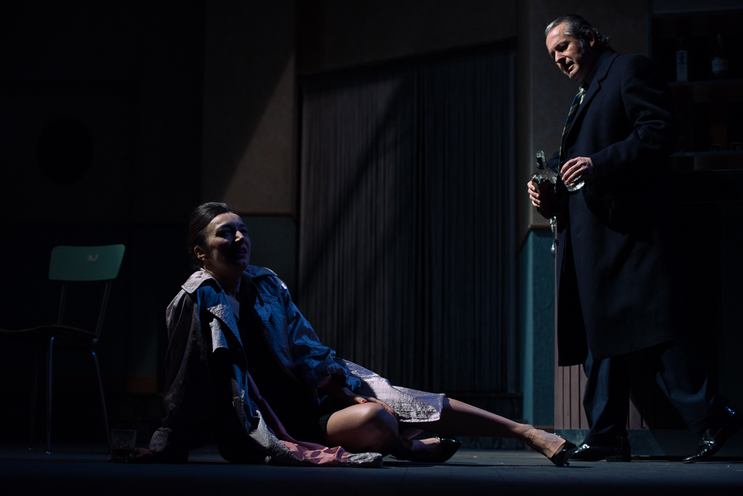 Stessa scenografia, stesse luci, stessa atmosfera, stessi attori, ma le storie sono quattro, tutte con un comun denominatore: la malinconia della vita. Così il regista Valerio Binasco nel suo spettacolo Night Bar, in questi giorni al Teatro Duse di Genova, ha voluto raccogliere quattro brevi testi di Harold Pinter che nello stesso luogo, appunto un bar, raccontano la desolazione dei personaggi che lo frequentano, ma anche la poesia che sta dentro queste storie un po’ borderline, ma indubbiamente ricche di umanità.