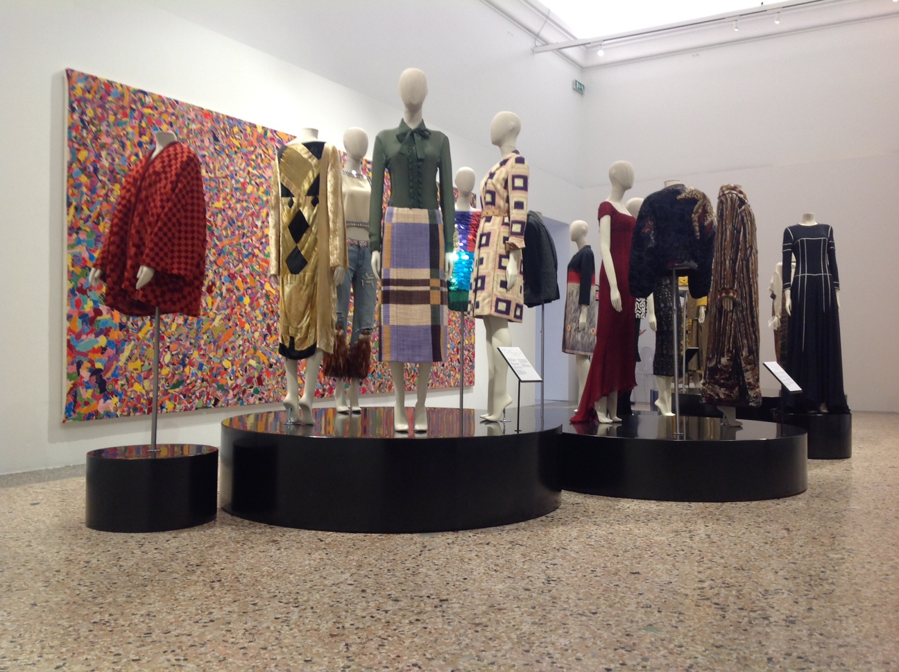 Un viaggio che racconta la moda italiana, attraverso una molteplicità di sguardi come un fenomeno policentrico capace di rapportarsi con saperi e intelligenze anche molto diversi. Tra i nomi in mostra ci sono Alberta Ferretti, Allegri, Antonio Marras, Archizoom, Aspesi, Basile, Benetton, Best Company, Biancaeblu, Blumarine, Bottega Veneta, Bruno Magli, C.P. Company, Closed, Diesel, Emporio Armani, Etro, Cadette, Callaghan, Calugi e Giannelli, Carpe Diem, Cesare Fabbri, Cerruti, Cinzia Ruggeri, Complice, Costume National, Dolce & Gabbana, Enrica Massei, Enrico Coveri, Fay, Fendi, Ferragamo, Fila, Fiorucci, Franco Moschino, Fratelli Rossetti, Fuzzi, Genny, Gian Marco Venturi, Gianfranco Ferré, Giorgio Armani, Gucci, Hogan, Iceberg, Krizia, La Perla, Luciano Soprani, Mario Valentino, Marni, Max Mara, Missoni, MiuMiu, Moncler, Naj-Oleari, Nanni Strada, Pomellato, Pour Toi, Prada, Roberto Cavalli, Romeo Gigli, Sergio Rossi, Sergio Tacchini, Sharra Pagano, Stone Island, Tod’s, Trussardi, Valentino, Versace, Walter Albini, Zegna. E a testimoniare la complessità creativa e sociale dell’arte italiana negli ultimi decenni del secolo e illuminare da una prospettiva inedita le qualità della moda italiana attraverso il loro sguardo e le loro pratiche in mostra ci sono opere di artisti come Michelangelo Pistoletto, Maurizio Cattelan, Elisabetta Benassi, Luciano Fabro, Francesco Vezzoli, Vanessa Beecroft, Luigi Ontani, Alighiero Boetti, Giulio Paolini, Ketty La Rocca, Gino De Dominicis.