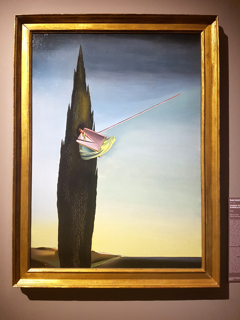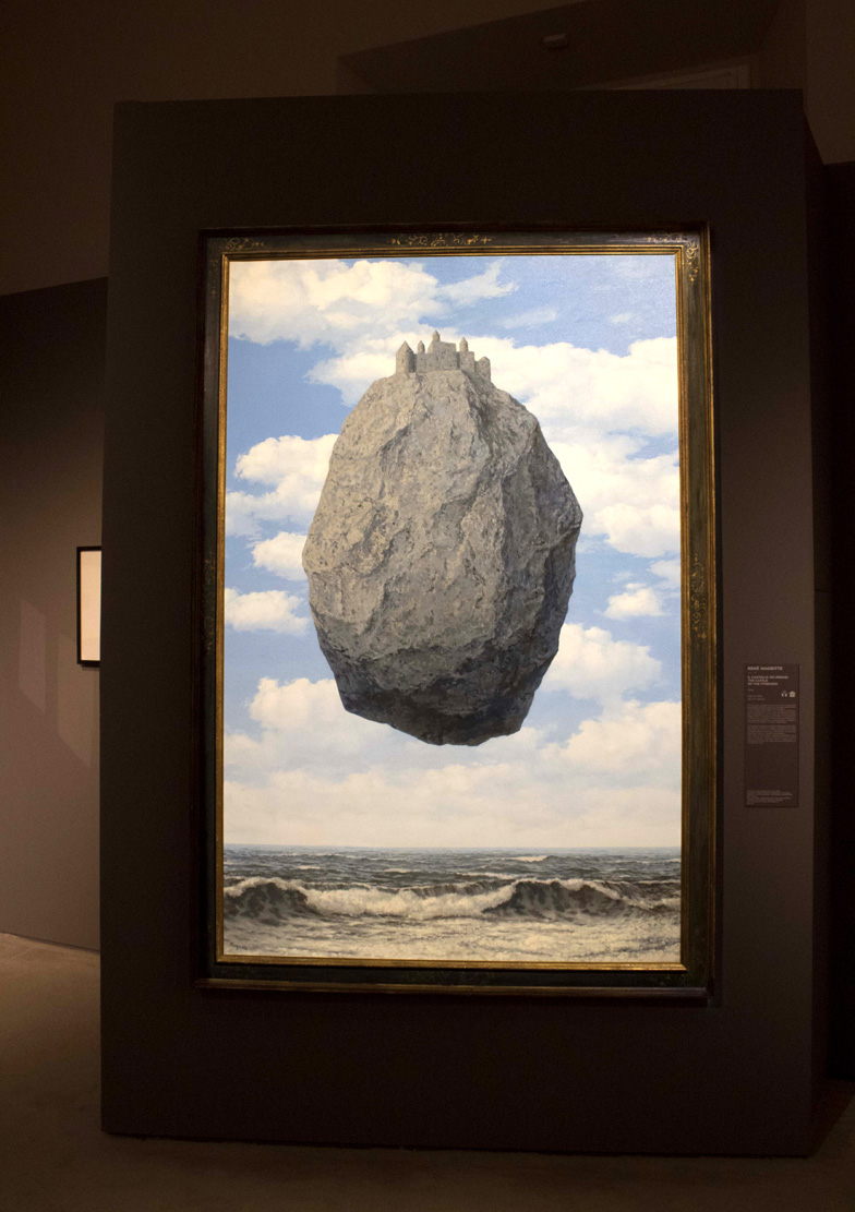 Al termine del percorso espositivo, imponente per le sue dimensioni, si scorge una delle più celebri tele di René Magritte, Le Chateau de Pyrenees: in essa la realtà gioca stilisticamente con l’assurdo. La roccia sospesa nell’aria, rappresenta una sfida alla gravità ma anche una resa illusionistica, trasformando il quotidiano in sogno. Con questa raffigurazione Magritte ci fa riflettere sulla concezione tipicamente postmoderna del vuoto, della mancanza di radici e sull’incertezza del nostro presente.