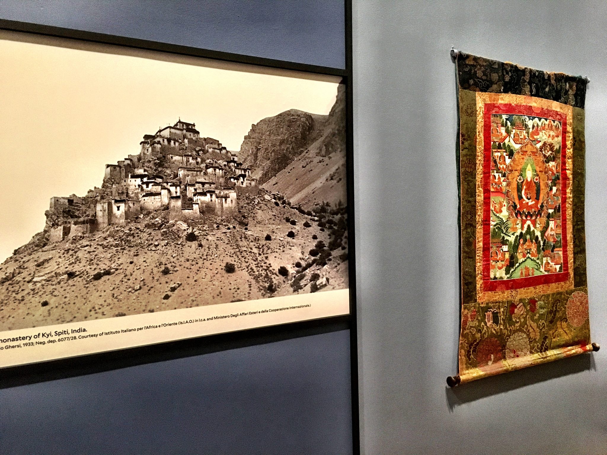 Tucci aveva comprato i dipinti buddisti durante le sue otto spedizioni in Tibet, fra il 1928 e il 1948. Nella mostra li si ammira a fianco delle foto che illustrano gli incredibili viaggi: oltre 7 mila chilometri a piedi in un’area del mondo allora praticamente sconosciuta e raggiungibile non in aereo, ma dopo essere arrivati per nave in India. I dipinti e le foto insieme sono spesso l’unica testimonianza rimasta dei templi buddisti visitati da Tucci, perché dopo l’occupazione del Tibet da parte della Cina comunista l’80% dei templi è stato distrutto.