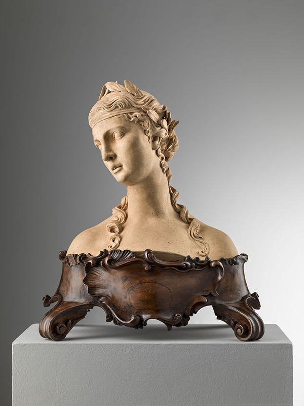 Terracotta, base in legno intagliato; Provenienza: collezione Sangiorgi.