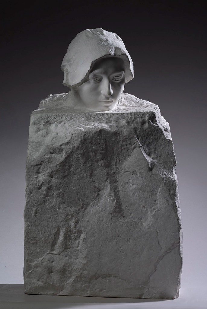 Quella di Rodin è quindi una scultura certamente non facile da apprezzare, scomoda e dolorosa tanto è profonda la sua espressività: il Pensatore – di cui in mostra è visibile la versione in gesso del 1903 -, evoca Kierkegaard e il suo singolo, evoca Nietzsche che guarda nell’abisso dell’infinito, evoca l’angoscia dell’uomo moderno travolto dai forsennati cambiamenti di un’Europa in crisi d’identità, sull’orlo della Grande Guerra. Accostate ad esso, il delicato Pensiero, un gesso del 1893 che se da un lato rievoca le michelangiolesche Prigioni, dall’altro è calato nella sua epoca per il morbido copricapo nuziale bretone posato sulla testa femminile; ma l’aspetto poetico non inganni. Lo sguardo inclinato verso il basso, le labbra serrate, rimandano all’angosciata malinconia del Pensatore, entrambi simboli senza tempo della condizione umana.