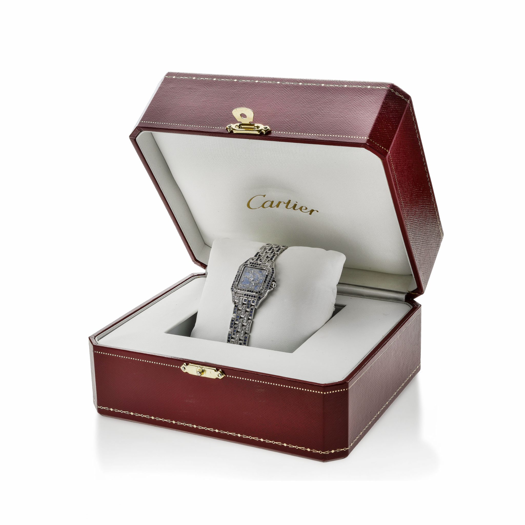 L’idea di realizzare questo orologio dal gusto intramontabile nacque da un quadro del 1914, realizzato da George Barbier su ispirazione di Louis Cartier. Doveva essere solo l’illustrazione di un invito per una mostra di gioielli, invece diventò un simbolo universale. Lo storico marchio francese decise di battezzare uno degli orologi più desiderati proprio Panthère. Sembra un gioiello, in realtà si tratta di un orologio, dotato di un meccanismo e una cassa molto sofisticati. Le viti sul quadrante definiscono lo stile, gli angoli smussati addolciscono le linee della forma quadrata, la ormai celebre corona ottagonale ornata di uno zaffiro e i numeri romani.