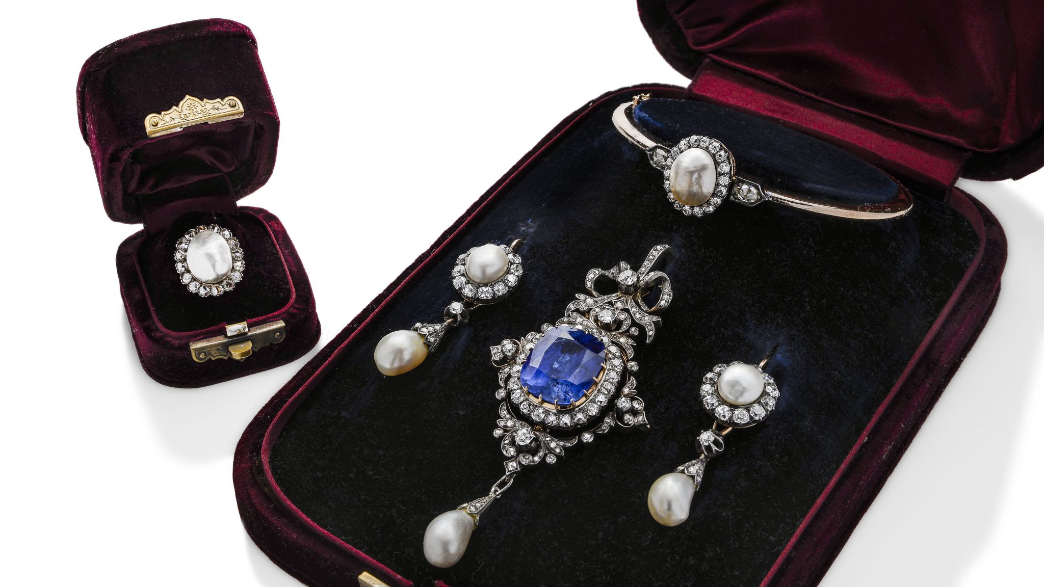 Da domani, giovedì 15 marzo, fino al prossimo 22 marzo, l’innovativa casa d’aste fiorentina -prima e unica a vendere in Italia gioielli e orologi esclusivamente online- vanta una preziosa raccolta di lotti da non perdere. A brillare per prima è una parure in oro, diamanti, perle naturali e zaffiro naturale di 23 carati della seconda metà del XIX secolo. Orecchini, spilla e bracciale con basa d’asta di 30.000/50.000 euro (perle e zaffiro corredati di certificato CISGEM).