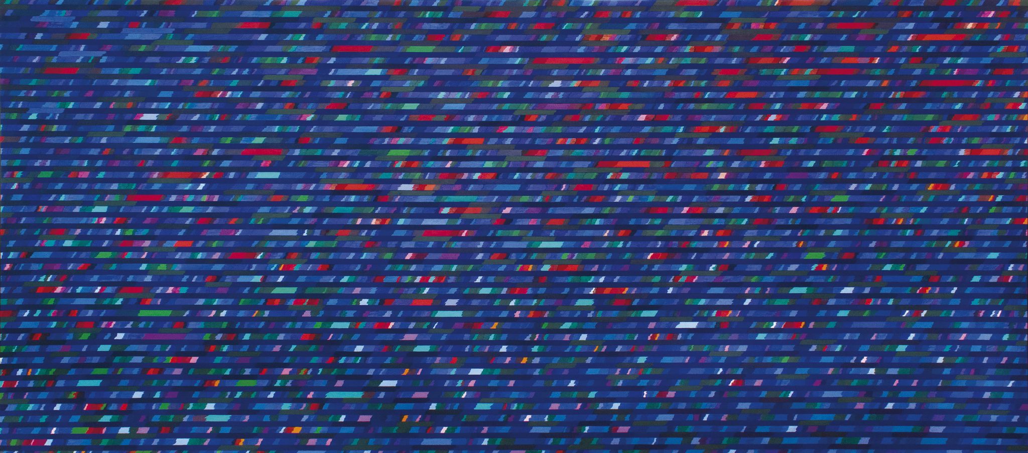Il maestro dell’astrattismo italiano,uno dei più grandi coloristi della sua generazione, è scomparso nel 2005. Il colore e la luce sono gli elementi fondanti della sua opera. In “Long distance” quelli presenti sono il rosso, il blu e il ciano. Nel catalogo dell’asta si legge: «L’artista trova la sua massima espressione in opere di grande dimensione, come questa, qui presentata, piena di contemporaneità […] “Long distance”, opera unica e storica per grandezza, eleganza e intelligenza formale e cromatica, pur essendo successiva, partecipa senza ombra di dubbio della stessa felice vibrazione della fase di più famosi reticoli degli anni ‘50 e ‘60 e forse può aspirare ad essere considerato la summa del lavoro di Piero Dorazio, rappresentativo di quell’aspirazione al raggiungimento di colori e forme pure».