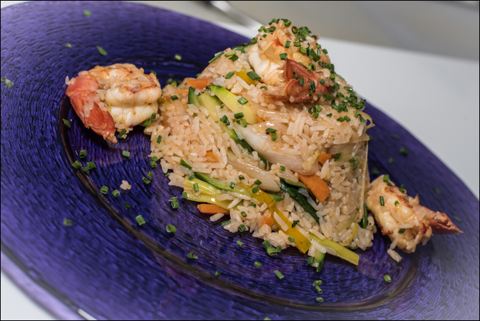 Vediamo allora qualche esempio di questo giro del mondo in punta di forchetta, o meglio, di otemoto (bacchetta): accanto ai classici sashimi e chirashi troviamo l’italianissimo carpaccio di ricciola, il Sicily burger tonno (riso, tartare di tonno, capperi di pantelleria e pistacchio di bronte), l’hawaiano poké di tonno (tagliato a dadini e marinato con salsa ponzu, alga wakame, mango, avocado, riso) e tra gli uramaki il fusion roll, il caraibico roll e il salmon flambé roll. Danny Vasquez Moralez, tuttavia, ama divertirsi anche con ramen saltato con soia e verdure, tempura di gamberi e verdure, polpette di pollo allo zenzero, manzo scottato con salsa al tamarindo. Avendo assaggiato un po’ di tutto, posso confermare che la “fusion” ha raggiunto l’obiettivo: gli aromi non si confondono, il tamarindo accompagna la carne senza stufare, la frutta caraibica stupisce, a contatto col pesce crudo o flambé.
