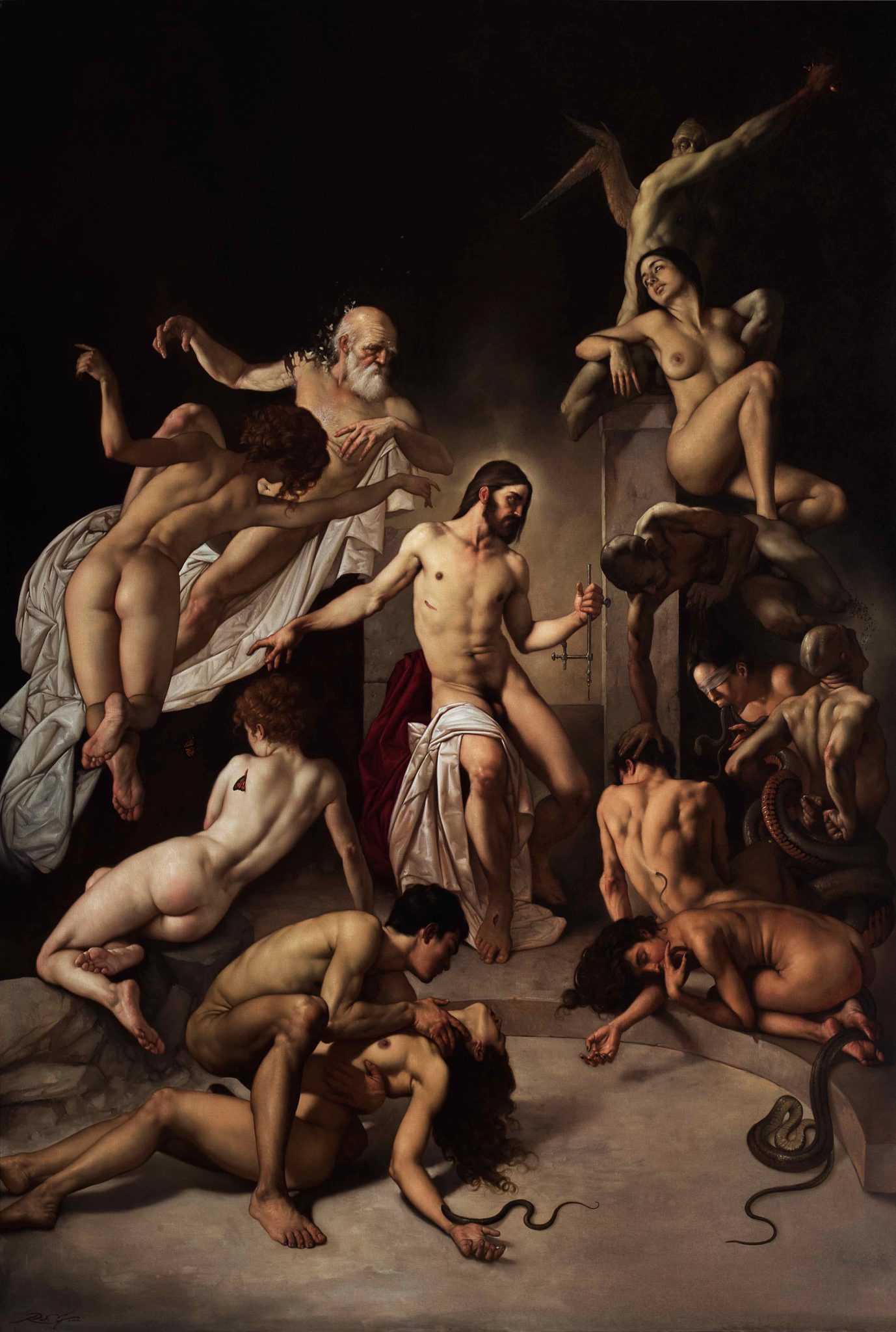 Per la cura di Angelo Crespi, le quattordici opere in esposizione reinventano la pittura classica sotto il gusto di una sensibilità assolutamente contemporanea. Allievo ideale dei grandi maestri del Cinquecento e del Seicento, da Michelangelo a Caravaggio, e poi dell’accademismo sette-ottocentesto, Roberto Ferri sublima gli elementi iconografici tradizionali con strumenti tipici del surrealismo.