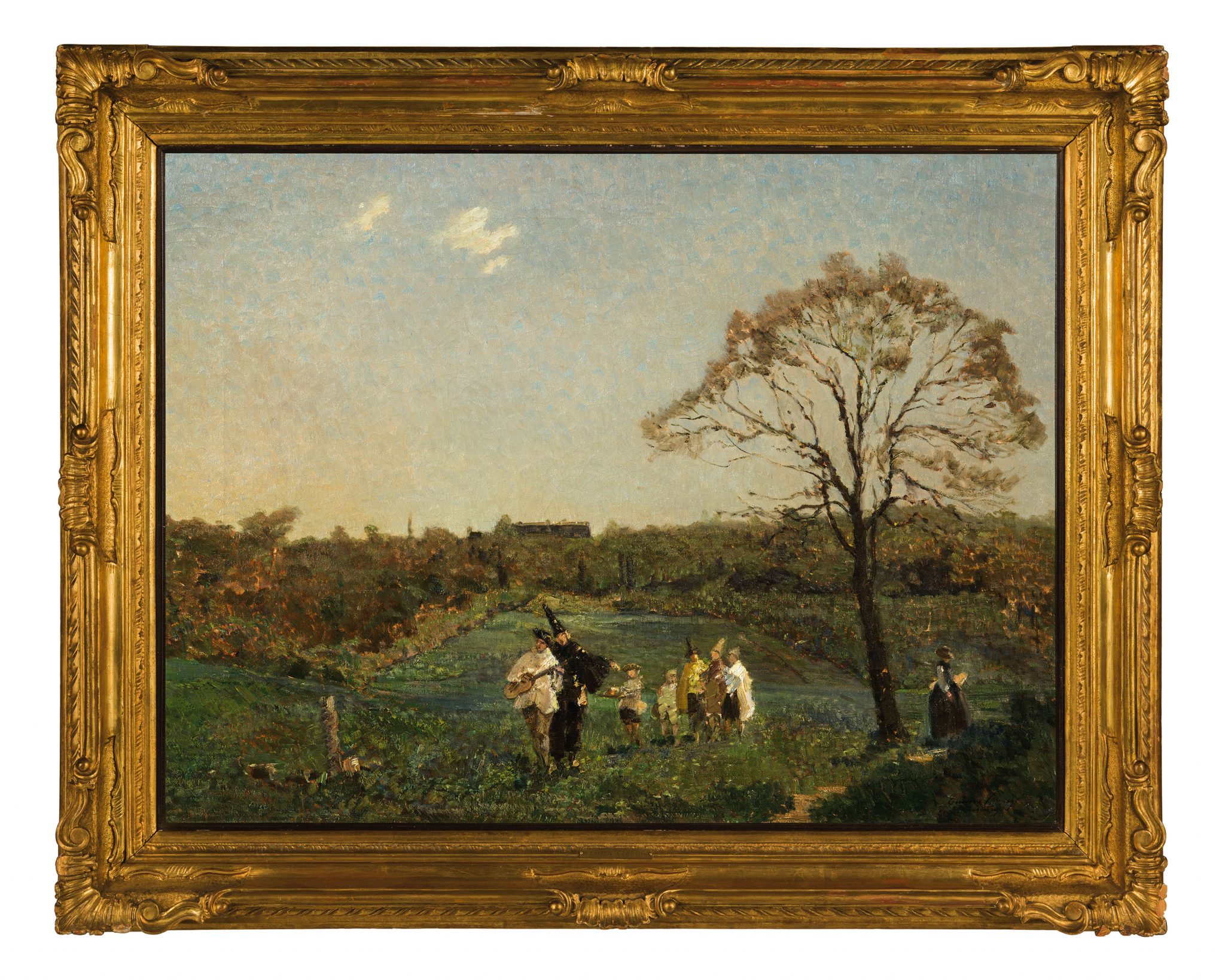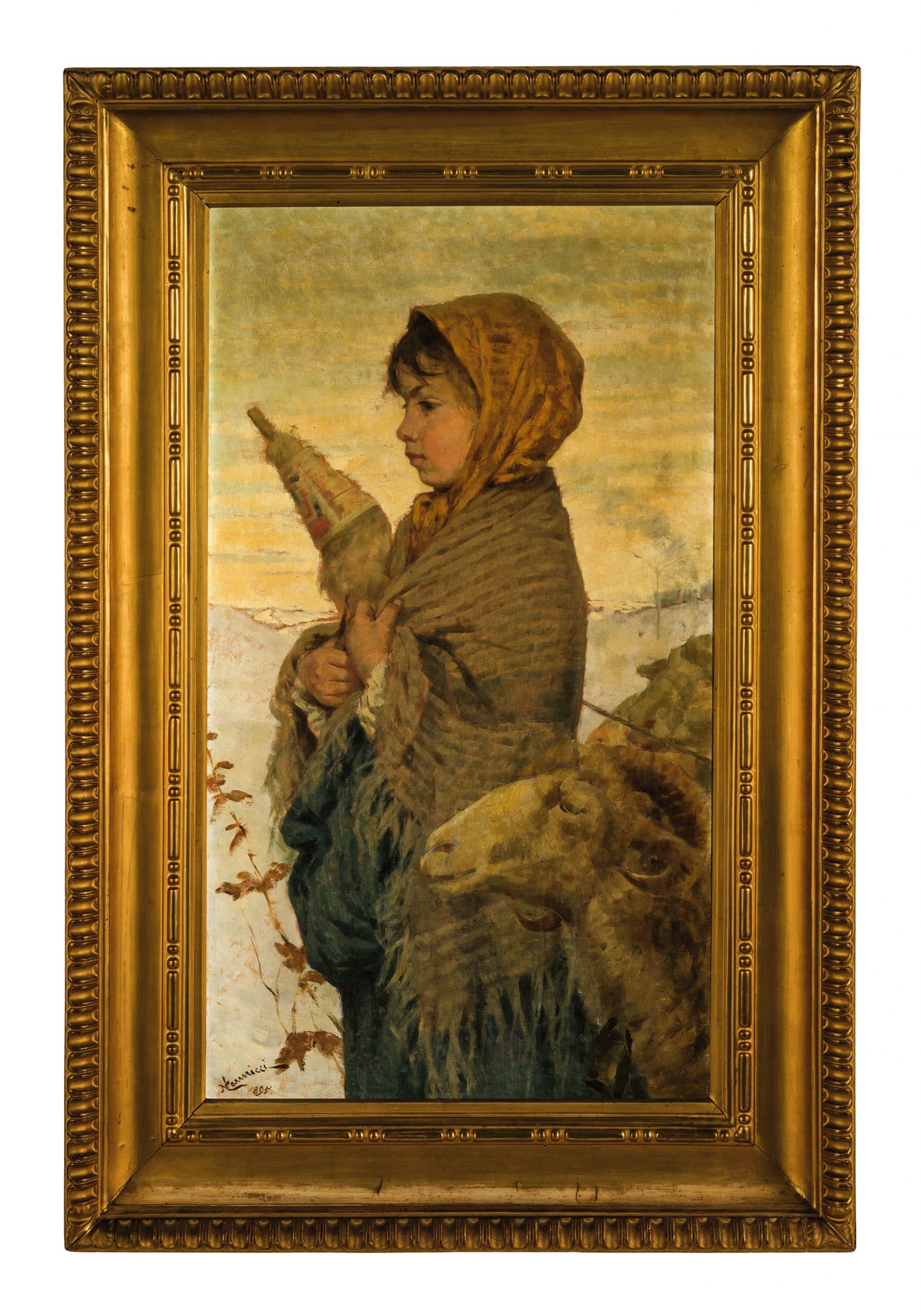 Nella sezione dedicata ai dipinti del XIX secolo emerge, per lo struggente lirismo, la Piccola filatrice di Niccolò Cannicci, datata 1895, tela esposta nello stesso anno negli Stati Uniti alla “Cotton States and International Exposition” di Atlanta, e qui stimata 28.000 – 32.000 euro (lotto 943): opera dove l’artista rende ancora più intima ed introspettiva la lezione macchiaiola di Giovanni Fattori e Telemaco Signorini, lo stesso spirito che anima le Contadine al riposo di Angiolo Tommasi (lotto 941, stima 20.000 – 24.000 euro).