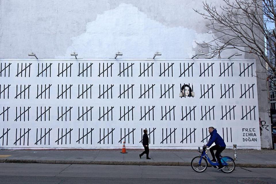 A Manhattan è apparso un nuovo murales dell’anonimo street artist britannico, dedicato a Zehra Doğan, la ventottenne giornalista e artista turca, di etnia curda, condannata a quasi tre anni di carcere per aver realizzato un dipinto