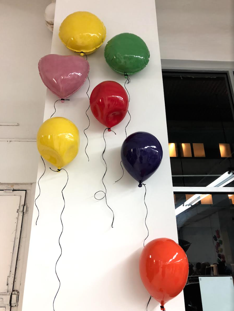 Other intriguing work includes Ed Williamson’s skull paintings and Sivan Sternbach’s ceramic balloons. Williamson’s small canvases are colorful and loud, daring the viewer not to react to the words, such as “Not Your Negro,” and “Rule 1. Don’t Be Racist.” With obvious ties to Damian Hirst and Guy Richards Smit’s skull watercolors, the paintings are still visually pleasing while blatantly representing death and destruction. On the opposite side of the spectrum, Sivan Sternbach’s ceramic balloons can almost pass for celebratory opening night balloons, and can be unavoidably connected to Koons’ balloon animals; they are less flashy and therefore more intriguing. In something so simple is something visually arresting; the heaviness of a ceramic masquerades as the light airiness of a balloon. Sternbach’s Blah Blah Blah reflects the constant chatter and background noise of an art fair. But how does one sort out the meaningful from all the nonsense?