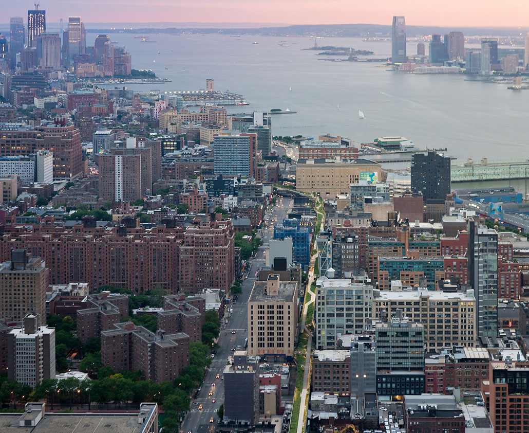 La High Line, inaugurata nel 2009,è diventata uno dei luoghi più visitati a New York: otto milioni di persone l’anno, frequentano questa passeggiata creata al posto di una vecchia ferrovia per treni merce, con vista sul fiume Hudson, ma anche su parecchie opere d’arte.