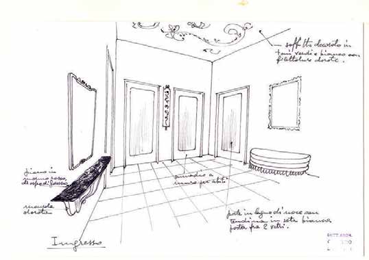 Il progetto dell’intero appartamento fu affidato nel 1954 allo studio d’arredamento Borsani, molto in voga in quegli anni e che si avvalse della collaborazione del maestro dello Spazialismo. Si tratta di un altissimo esempio delle realizzazioni ambientali di Fontana, un risultato di quegli anni di ricerche concepite in collaborazione con i più celebri architetti del periodo che volevano realizzare la sintesi delle arti: tra questi basti citare la Struttura al Neon realizzata per la IX Triennale di Milano (1951), distrutta subito dopo l’esposizione ed oggi ricostruita presso il Museo del Novecento di Milano o le decorazioni per due padiglioni della XXXI Fiera di Milano (1953). La maggior parte di queste installazioni concepite in scala architettonica e segnate da un uso rivoluzionario dei materiali sono andate perse.
