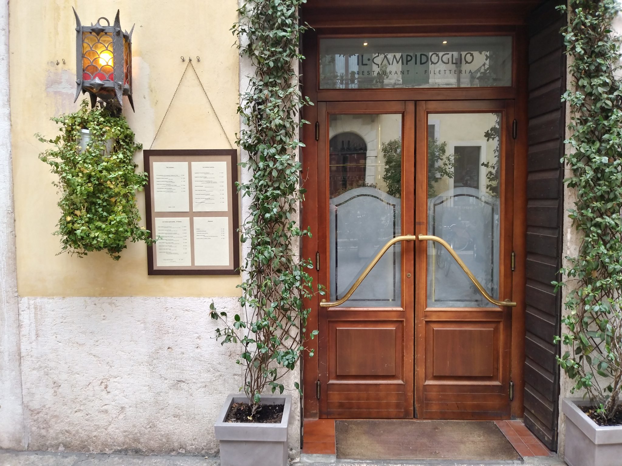 Anche il locale però merita un cenno. Un cameriere ben preparato e disponibile ci racconta che Il Campidoglio fino a 3-4 anni prima era niente più di un bar, punto di riferimento però per i veronesi doc, che qui passavano le loro serate da decenni. L’ammodernamento non ha tolto quel senso di familiarità che lo contraddistingue nei ricordi dei suoi vecchi clienti, ma soprattutto non nasconde la sua chicca più importante nel “look”: le sale vicine nascondono degli affreschi risalenti al 1300-1400 ben conservati che rendono una cena al Campidoglio anche un viaggio nella storia e nell’arte.