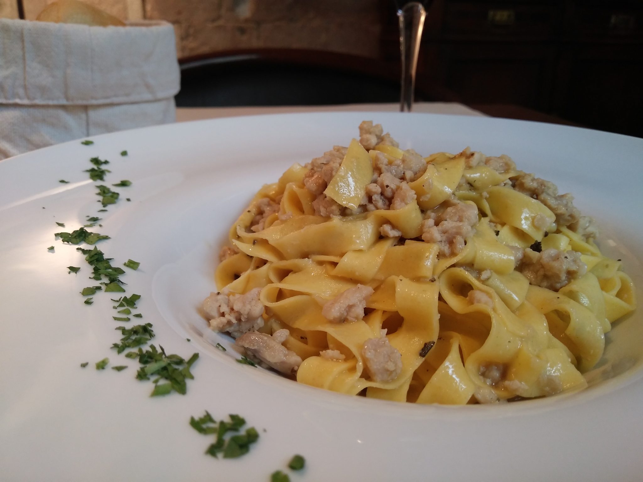 Di primo perché non lasciarsi coccolare da delle Tagliatelle al ragù di coniglio? L’impiattamento rispecchia un po’ il senso intero del locale: il bello della semplicità. La materia prima è di qualità, ma una spolverata di prezzemolo la trasforma quasi in una portata essential-gourmet. Gusto genuino, di casa, ancora più esaltato da un Valpolicella Ripasso Pietro Clementi.