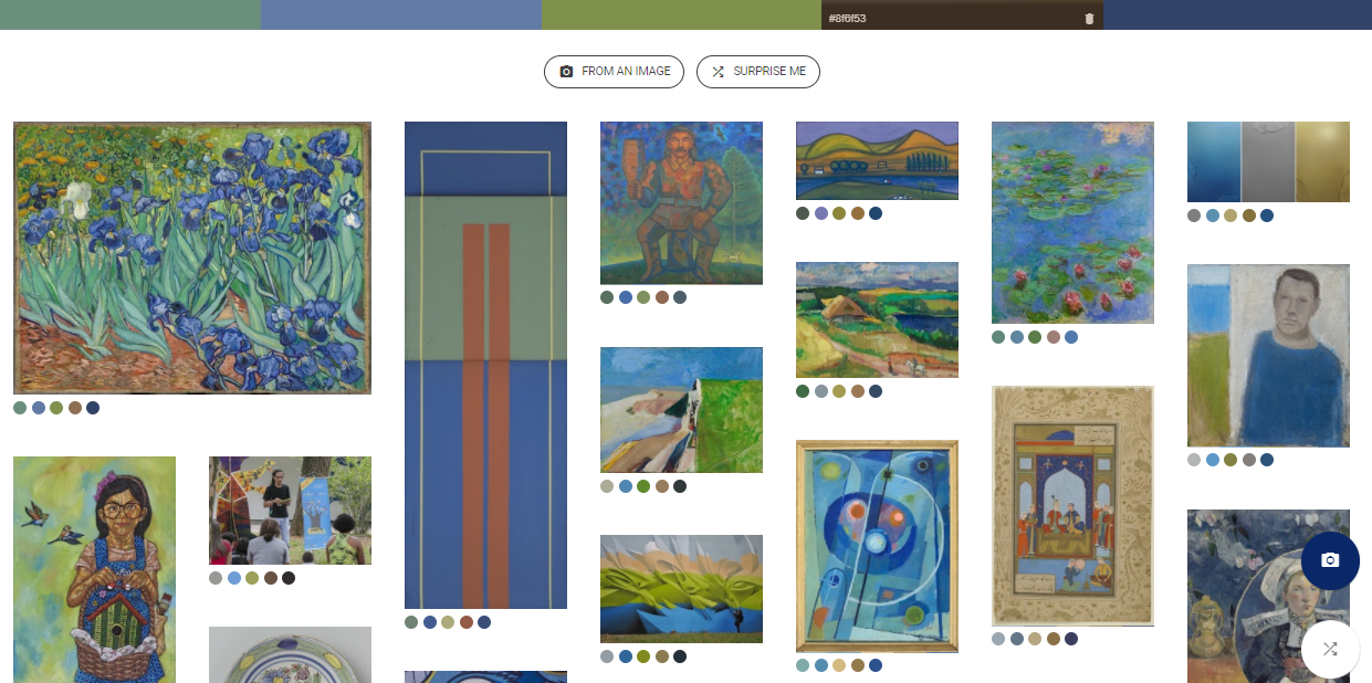 I colori comunicano sentimenti e incidono profondamente sull’espressività, chi ama l’arte ne è consapevole. Con Art Palette non solo si trovano connessioni cromatiche tra un’opera e l’altra, ma tu stesso puoi ottenere i giusti stimoli alla creatività. Sei rimasto colpito da un fiore con particolari sfumature? Fotografalo e inserisci l’immagine su Art Palette, in men che non si dica potrai scegliere la tonalità cercata e vedere a quali opere d’arte si abbina. Persino il tuo maglione o il divano di nonna possono avere qualcosa in comune con un dipinto di Paul Signac del 1898.