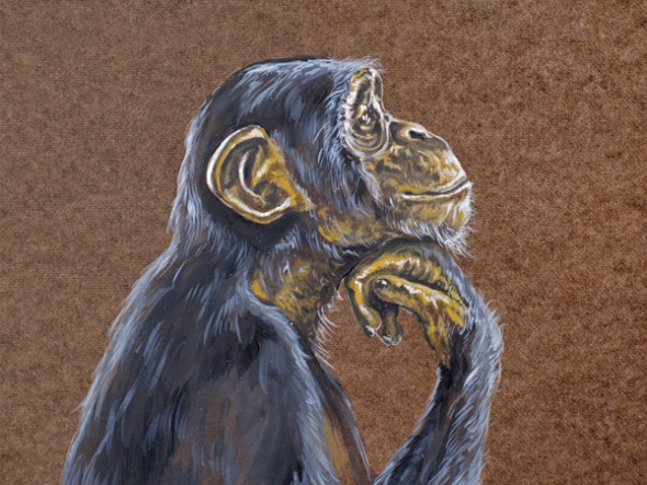 La costante ripetizione di un soggetto rende le tue opere riconoscibili e l’indagine sul tema molto approfondita. Qual è il valore che permette al primate di porsi al centro della tua poetica? Credi che in futuro sarà sempre in grado di fornirti i giusti stimoli?