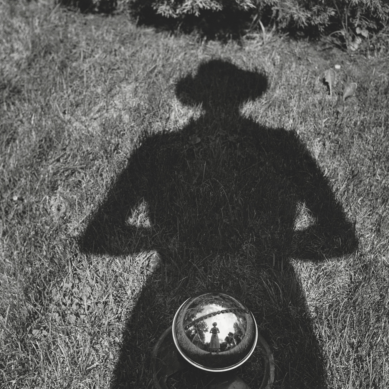E poi a volte compare un’ombra, una silhouette con un inseparabile cappello floscio, e spesso appare riflesso in uno specchietto, in una vetrina, in un pomo di ottone lucidissimo una figura che sta scattando la foto con una rolleiflex al collo. Non sono casuali queste apparizioni, ma anzi ricercate e ci rimandano ai camei che Alfred Hitchcock amava fare come sigla dei suoi film. E’ la firma dell’autrice, una traccia di se’ nelle sue immagini, di lei che non ha mai reso pubbliche le sue foto.