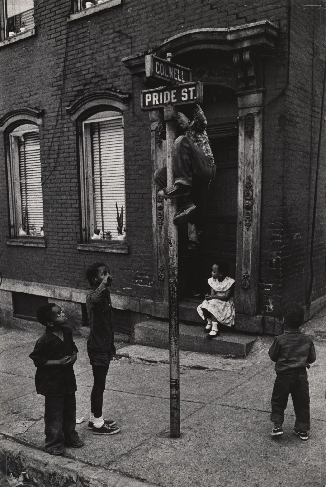 Children playing at Colwell and Pride Streets, Hill District, 1955-1957