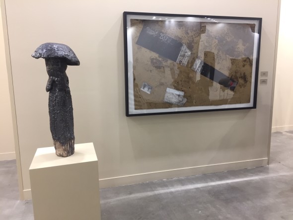 Si tratta indiscutibilmente della galleria d’arte più importante e potente del globo, e per questo la sua presenza con uno stand a una fiera di settore ne determina per certi versi il prestigio e il “posizionamento” in ambito internazionale. Parliamo ovviamente di Gagosian, e parliamo di miart, la fiera milanese che celebra oggi la sua preview e che per l’appunto ospita per la prima volta un booth griffato Gagosian. Palpabile quindi la curiosità diffusa di scoprire come il grande Larry si presenta sullo scenario meneghino: con uno stand condiviso con la torinese/londinese galleria Mazzoleni. E la scelta cade su Sterling Ruby, trentaseienne artista americano rappresentato da un dipinto, alcune fotografie ed alcune sculture in ceramica. Noi vi anticipiamo alcune immagini…