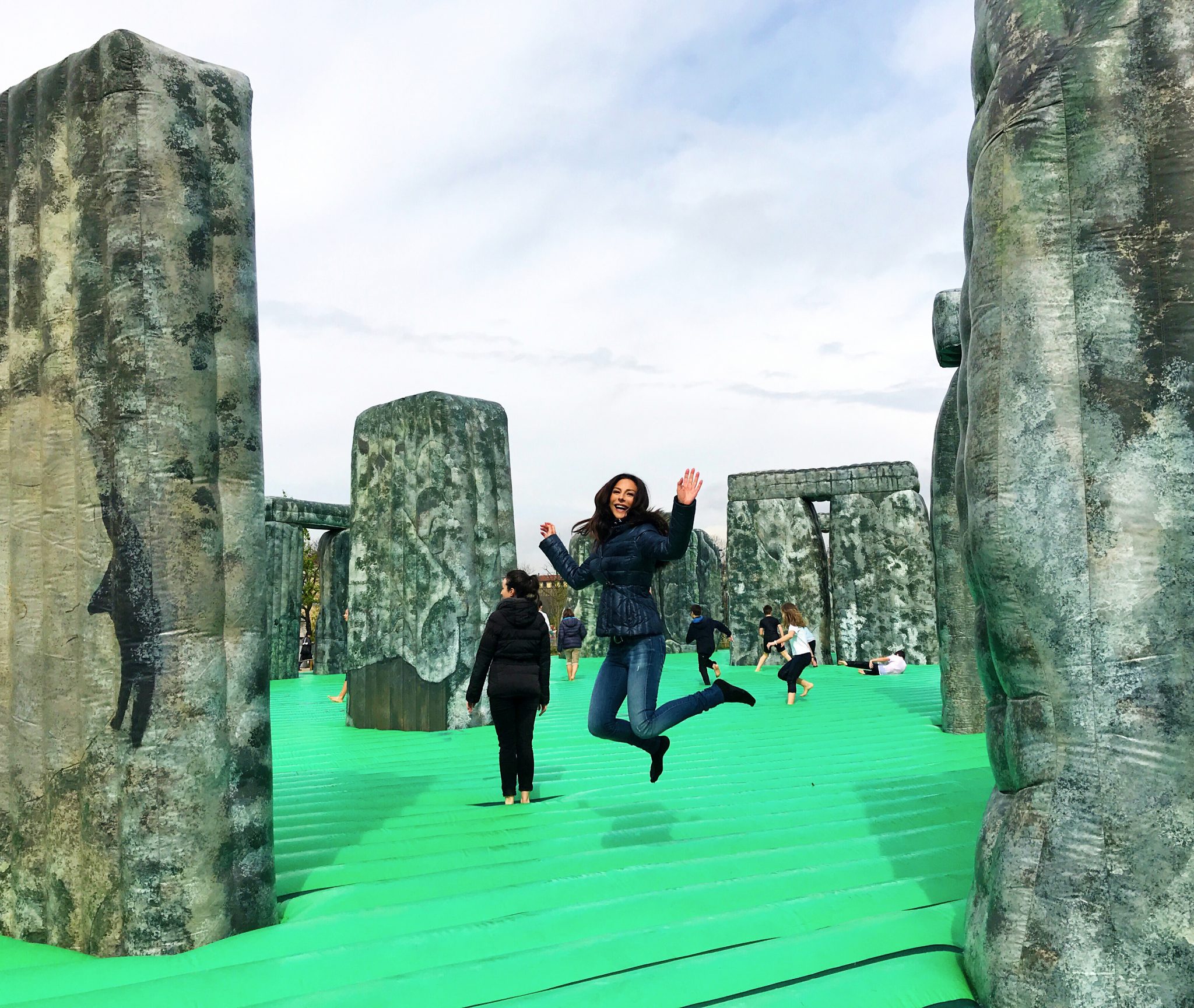 Con il senso dell’umorismo che contraddistingue molti dei suoi progetti, Deller trasforma il monumento di Stonehenge in un gigantesco gioco gonfiabile per bambini, riproducendolo in plastica e facendolo diventare un’attrazione da luna park di 35 metri di diametro: il pubblico è chiamato a interagire con l’installazione, a salirci sopra, saltare e giocare al suo interno.