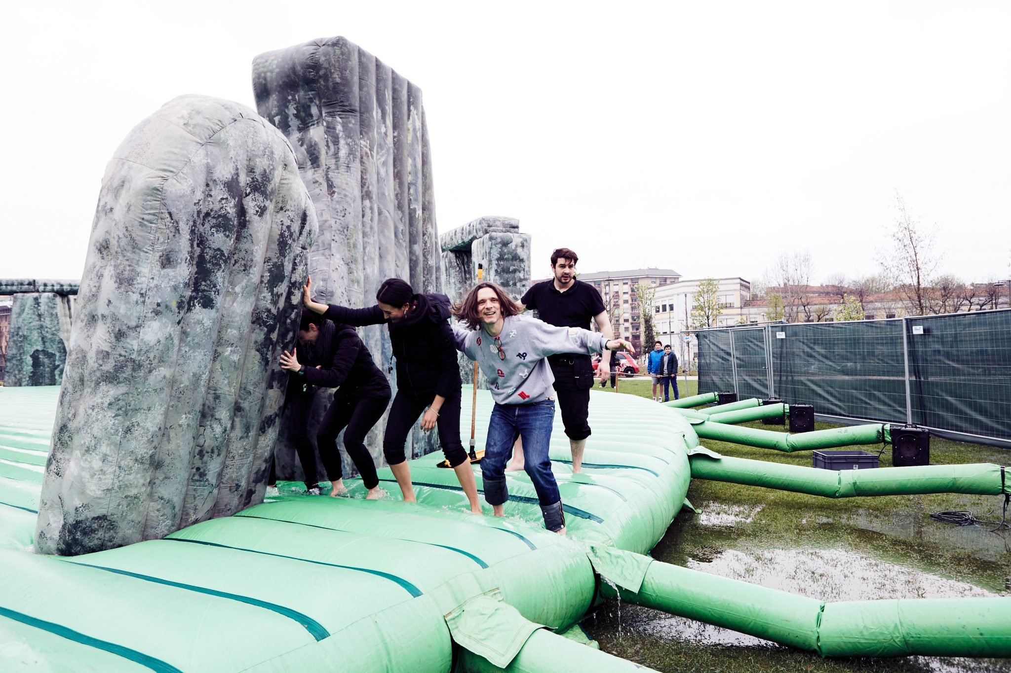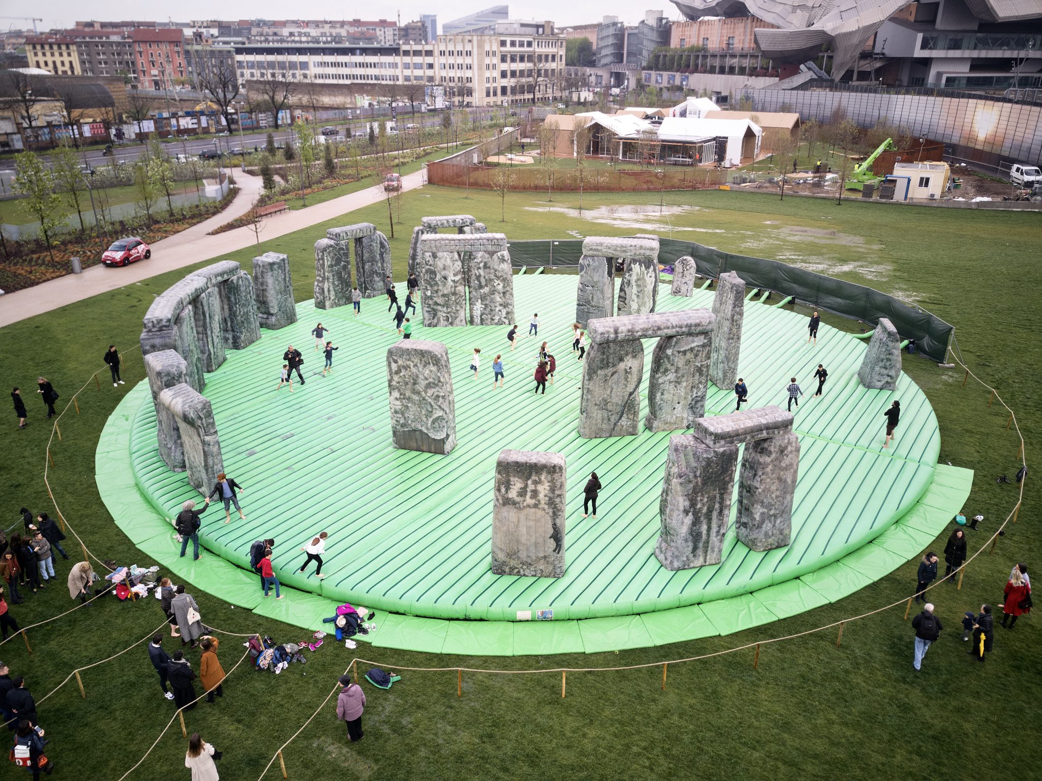 La Fondazione Nicola Trussardi ha invitato l’artista portando nel cuore del parco delle sculture di CityLife il gigantesco gonfiabile che ricostruisce in scala 1:1 il sito archeologico di Stonehenge, uno dei luoghi fondanti dell’identità e della cultura britannica, dichiarato patrimonio dell’umanità dall’UNESCO nel 1986.