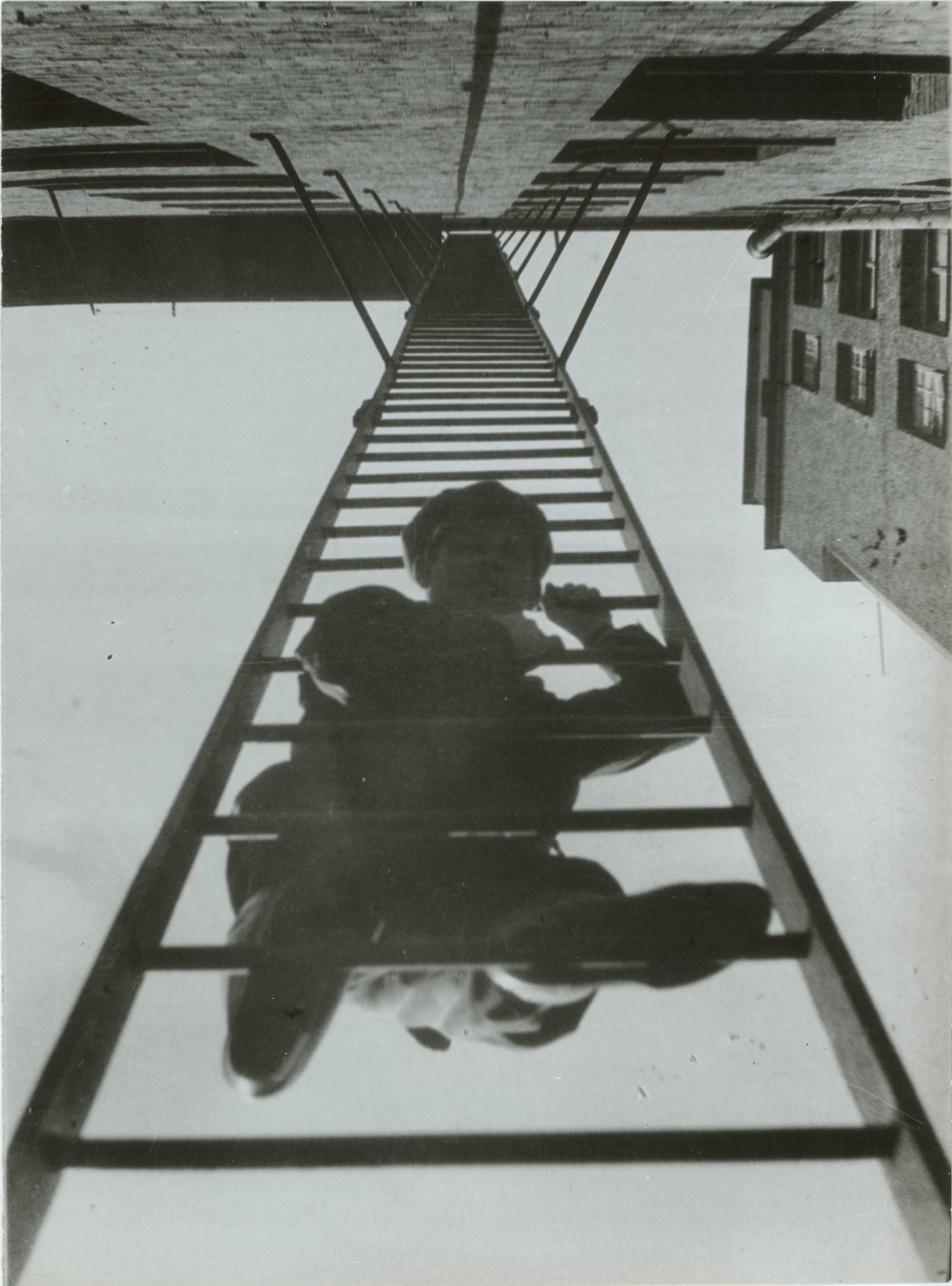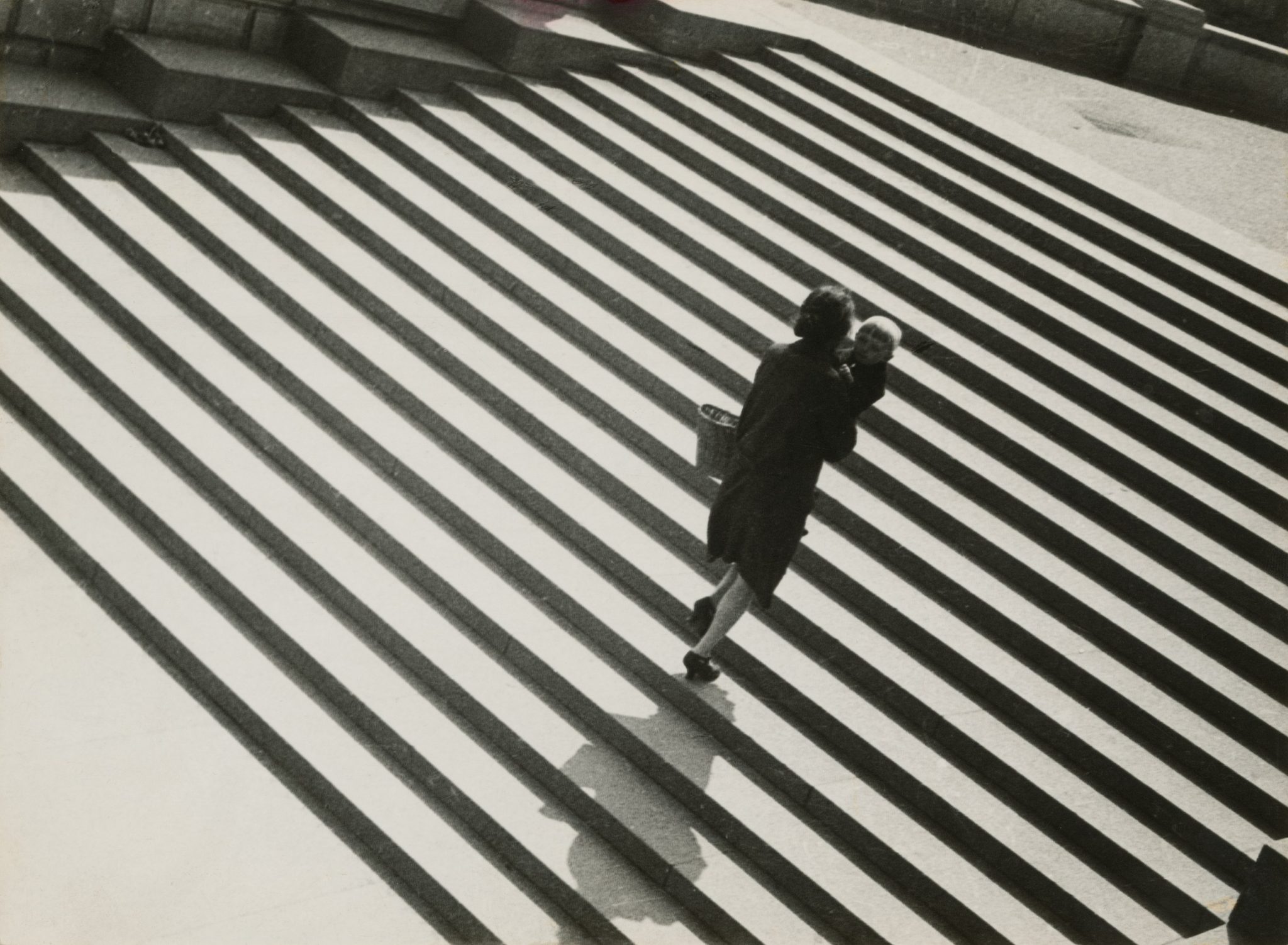 Il percorso espositivo a Palazzo Te si apre con l’Autoritratto caricaturale del 1922, esposto accanto a un corpus di ritratti, in cui appaiono anche amici e familiari, e alle famose fotografie La scalinata (1930) e Ragazza con una Leica (1934), che incarnano integralmente i principi innovativi del suo “metodo”.